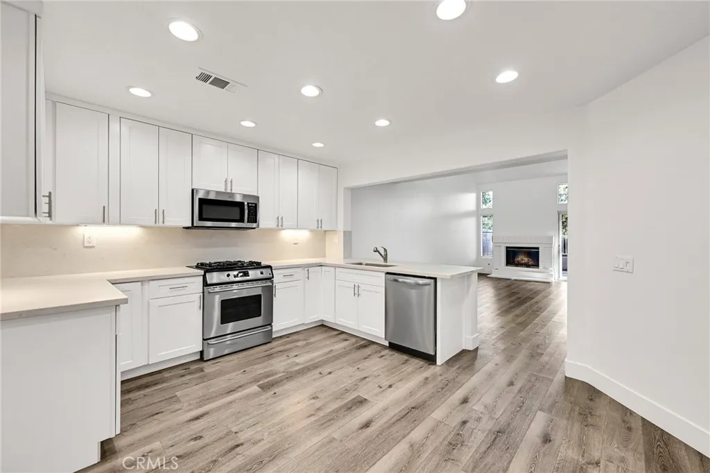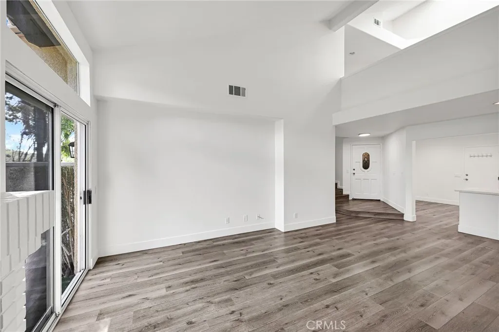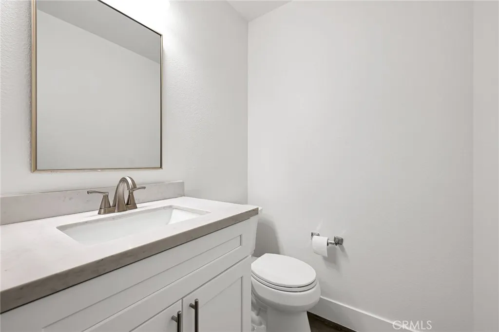 Situated on the Tijeras Creek Golf Course within the sought-after Tierra Linda community of Rancho Santa Margarita, this light-filled residence offers a thoughtful blend of comfort, function, and everyday ease. Positioned on a quiet cul-de-sac, the home features 3 bedrooms and 2.5 bathrooms, including a main-level bedroom with direct backyard access and a nearby bath, ideal for guests, a home office, or flexible living. The main living spaces are designed with an open, connected flow, where natural light moves easily throughout. Updated vinyl flooring carries across the main level, while sliding doors extend the living space outdoors to a private patio with artificial turf and room for both dining and lounging, all set against peaceful golf course views. The kitchen is both functional and inviting, appointed with granite countertops, white shaker cabinetry, and stainless steel appliances. It opens seamlessly to the dining and living areas, creating a natural setting for gathering and daily living. Upstairs, the primary suite offers a quiet retreat with fairway views, a dual-sink quartz vanity, and a walk-in shower. A secondary bedroom with its own full bath provides privacy and comfort, while a spacious loft offers versatility for a home office, media space, or play area. Additional highlights include a two-car garage with built-in storage and two driveway parking spaces. Residents of Tierra Linda enjoy access to Rancho Santa Margaritas extensive amenities, including parks, pools, trails, Tijeras Creek Golf Course, and the lake and beach club, along with access to Tesoro Hi