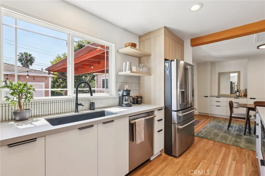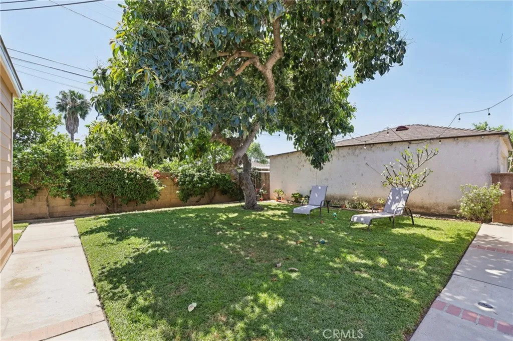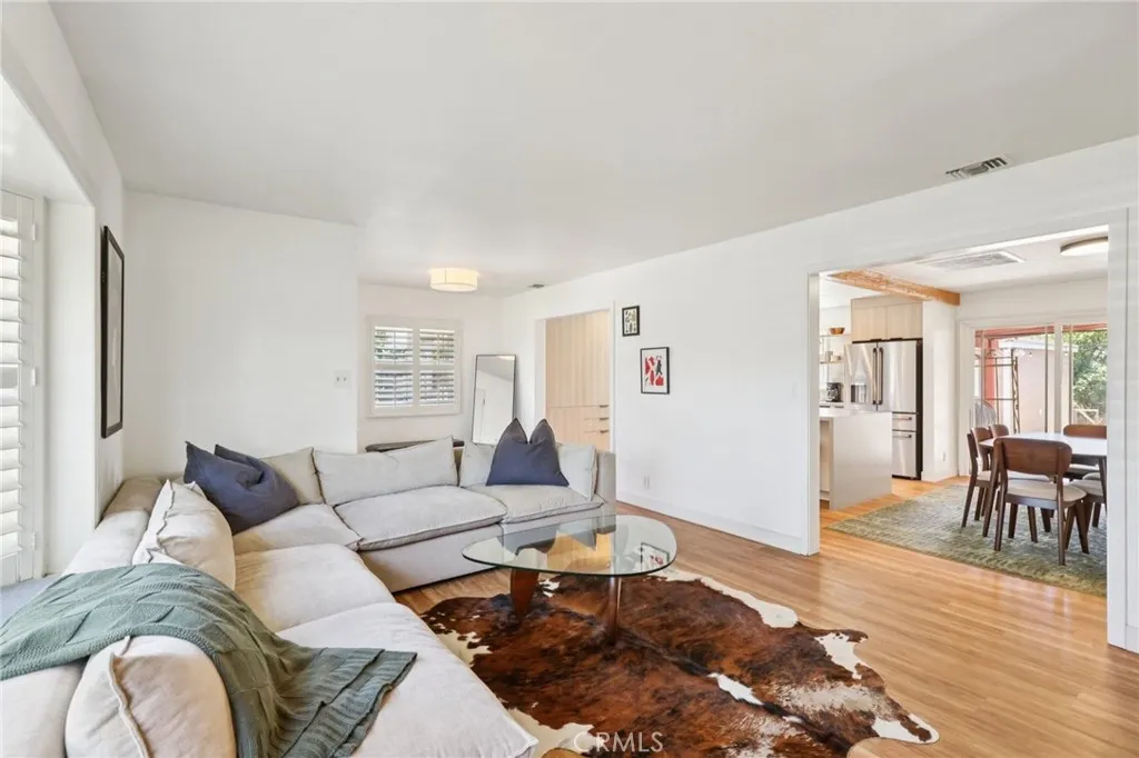 Located in the central heart of the coveted Wrigley Heights neighborhood, welcome home! This meticulously maintained and well upgraded home has been thoughtfully redesigned for comfortable and convenient living. Entering from a brick-accented entry and porch, the foyer and living room provide a spacious area for entertaining, natural light spilling through a charming bay window fitted, like most throughout the home, with custom plantation shutters. Rearward, a centerpiece to the home, is a top-notch chef's kitchen. Fully remodeled, it boasts an expansive stone-topped island, copious amounts of cabinet storage solutions, high-end matching Thermador appliances, and thoughtful open shelving to display one's finest and interesting pieces of cook and dish ware. The open, airy plan continues to the adjacent dining room, fitted with a sideboard built to match the design of the kitchen, and equipped with a sliding door leading to the rear yard. For sleeping quarters, two bedrooms can be found at the front and middle of the home, while the primary suite is insulated from these first bedrooms with the hall bathroom between. All of these rooms are fitted with plenty of closet space, expanded from the original 1940's design. The rear yard includes such features as a covered carport behind gates, a covered patio area, 2-car detached garage, and, perhaps most importantly, a green lawn shaded by a beautiful, mature and producing avocado tree. Home system upgrades include: energy-efficient heat pump system, tankless water heater, 200A electrical panel, and dual-pane windows throughout. Do