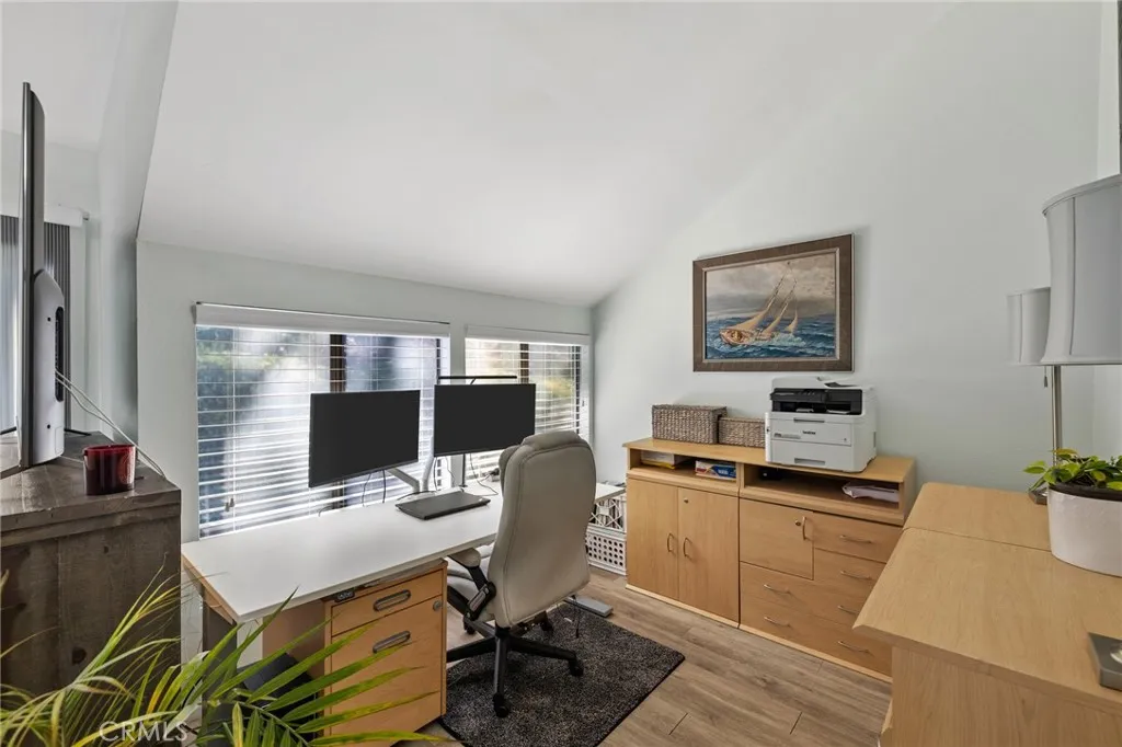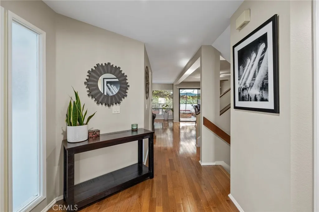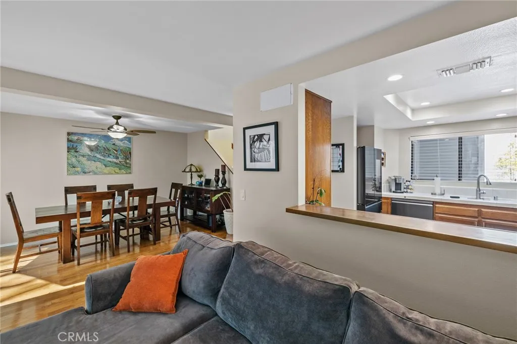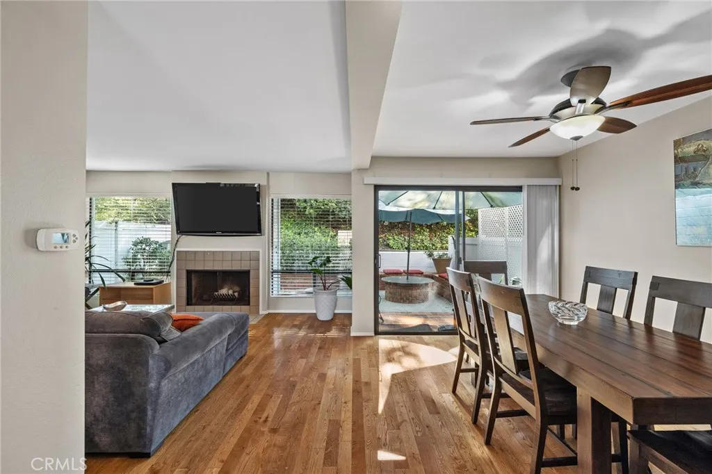 Prepare to fall in love with the architectural charm and coastal allure of the award-winning Baywatch community. This inviting Cape Cod-style townhome is quietly tucked away from the main road, offering privacy while still being part of one of San Pedros most desirable neighborhoods. From the moment you step inside, you are welcomed by a light-filled, open-concept living space where the living, dining, and kitchen areas flow together effortlessly, enhanced by beautiful wood flooring throughout the main level, creating a layout that feels both spacious and inviting, perfect for everyday living or entertaining. The living room centers around a cozy fireplace, while the dedicated dining area is ideal for gatherings. The kitchen is thoughtfully designed with generous cabinetry and ample counter space, making daily living both functional and convenient. Just beyond the living area, the backyard becomes your own private retreat, surrounded by lush landscaping and featuring a unique firepit that doubles as a table, perfect for relaxing or entertaining. While tax records reflect the home as having two bedrooms, inside you will find a beautifully enclosed den with double doors that offers incredible versatility and was previously used as a third bedroom, complete with custom built-ins, a cozy office nook, a skylight that fills the room with natural light, and access to a private balcony. The den also includes a wet bar with the potential to be converted into a closet, adding even more functionality to the space. A convenient powder room completes the main level. Upstairs, both bedro