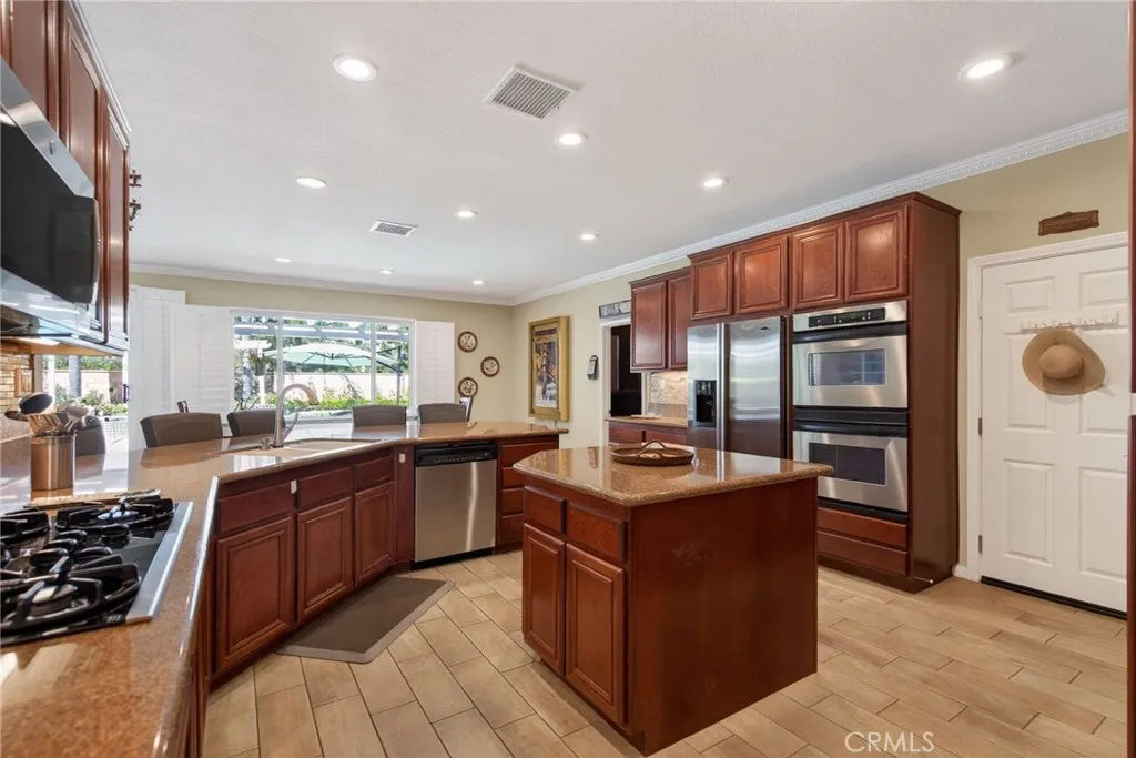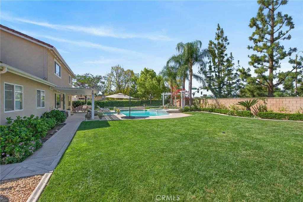 ORANGECREST COUNTRY STANDARD PACIFIC HOMES Introducing this stunning Plan Three model, offered for the first time by its original owners and in pristine, move-in ready condition! Boasting 6 bedrooms, 4 bathrooms, and an optional home theater, this home blends elegance with functionality in one of the most sought-after neighborhoods. Step inside to discover a thoughtfully designed layout. The formal living room impresses with its soaring two-story ceiling, while the expansive family room flows seamlessly into a dining area and a spacious island kitchenperfect for entertaining or everyday living. A secluded downstairs guest suite offers privacy, and the study off the foyer, with secondary access through the Butlers Pantry, can easily transform into a formal dining room to suit your needs. The home theater is fully equipped with a projector, screen, and seating, ready to elevate your family movie nights. Upstairs, youll find four additional bedrooms, including the luxurious primary suite featuring a spa-like bathroom, dual closets, one a walk-in, and an abundance of storage. Practicality meets convenience with a dedicated laundry room and a massive under-stair storage area. The backyard is a true retreat, showcasing a custom-designed Bogner swimming pool and spa, a large grassy play area, and a side paved sectionperfect for a half-court basketball setup if desired. The mature landscaping creates a private oasis, while the homes location at the end of a desirable cul-de-sac is just steps away from the award-winning Kennedy Elementary School. This home is an absolute delightdon