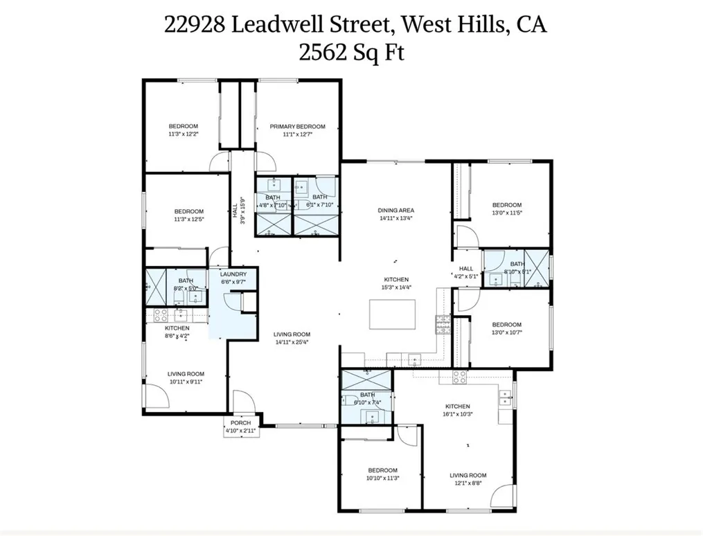 Welcome to 22926, 22928 & 22930 Leadwell St, a one of a kind triplex located in prime West Hills neighborhood. Imagine living in a fully remodeled 4-bedroom main house with a spacious backyard, while generating income from two additional units to help offset your mortgage. This unique property offers three separate units, each with its own address and private entranceideal for multi-generational living or strong rental income potential. The property has the potential to generate $10,000 in monthly rental income. Unit mix includes: 22928 Leadwell (Main House): 4 bedrooms, 3 bathrooms, 1,655 sqft; 22926 Leadwell (ADU): 1 bedroom, 1 bathroom, 470 sq ft; 22930 Leadwell (JADU) 1 bedroom, 1 bathroom, 416 sq ft. In total, the property offers approximately 2,550 sqft of living space, 6 bedrooms, 5 bathrooms on a 7,500 sqft lot. Extensively upgraded throughout, the property features brand new plumbing, electrical, and HVAC systems, along with new laminate flooring, quartz countertops, modern appliances, fresh stucco, smart modern lighting, and an irrigation system. The interiors are enhanced by impressive vaulted ceilings, modern cabinetry, and oak-white laminate flooring, creating a bright and contemporary feel. The main house offers a spacious backyard, a beautiful fireplace, and an open floor planperfect for both relaxing and entertaining. The ADU features its own private side yard, adding an extra layer of comfort and privacy. Each unit is equipped with its own washer and dryer hookups, providing convenience for all residents. Situated in a calm and desirable neighborhood with