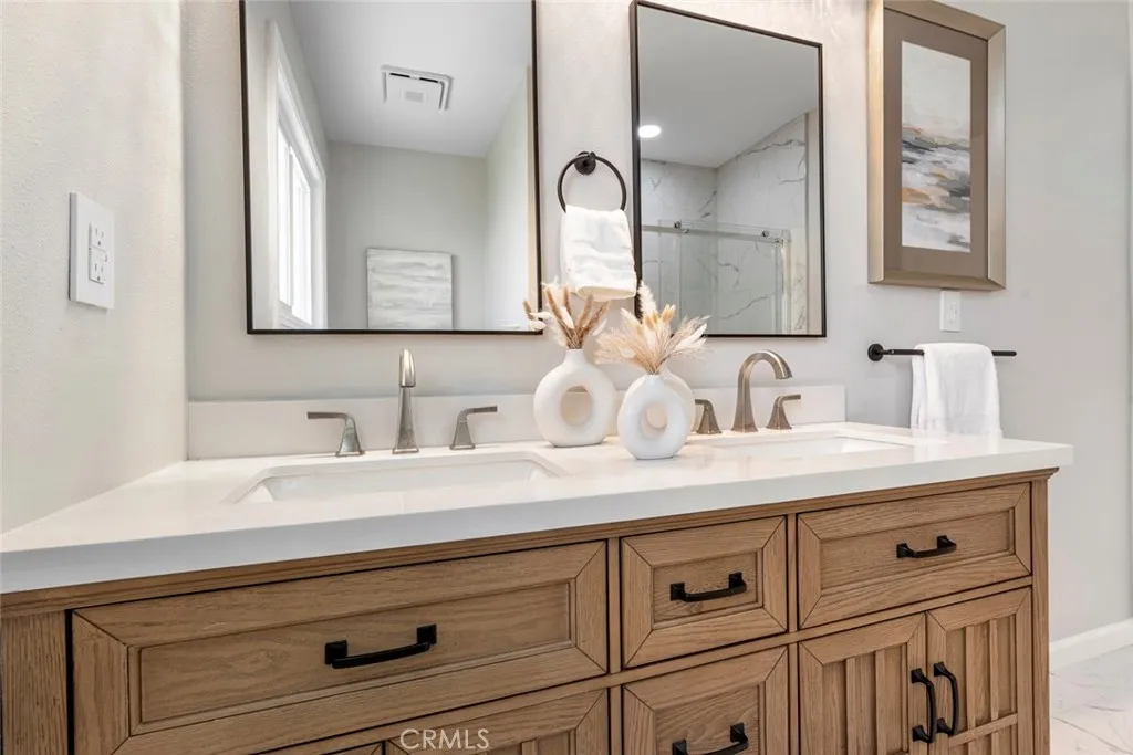 DONT MISS OUT on this TURNKEY and spacious POOL home located in a peaceful cul-de-sac in one of Whittier's highly desired neighborhoods! To start off, this stunning home boasts 4 bedrooms and 2 bathrooms including a primary suite with its own mini-split AC and a luxurious skylit bathroom! The thoughtfully designed open and functional floor plan provides light-filled interiors and includes tasteful modern upgrades throughout - ideal for both everyday comfort and elevated entertaining! Step inside to discover the striking open-concept kitchen containing high-end quartz countertops, a large center island and white shaker cabinets with self-closing drawers! Also, along with the remodeled kitchen there will be a complete stainless steel appliance package included! The living and dining areas flow seamlessly into the kitchen area on one end and into the backyard patio on the other end making the entire space inviting and entertaining for families of all sizes! For the exterior, the front yard contains an attractive curb appeal with its custom wood fencing on the side, freshly laid sod and a walkway that leads to the inviting front entry! Then, arguably the highlight of this home is the spacious and private backyard oasis which contains a covered patio area, a sparkling pool and a relaxing spa all setting the stage for unforgettable future family gatherings and year-round enjoyment!! In addition, this home offers new LED recessed lighting, premium water-proof laminate flooring, a convenient in-house washer and dryer space, a 200amp panel and a central air/heating system! To top it