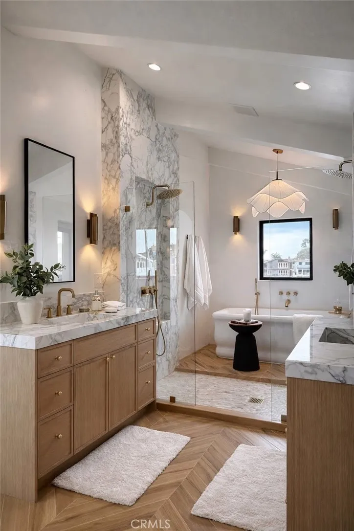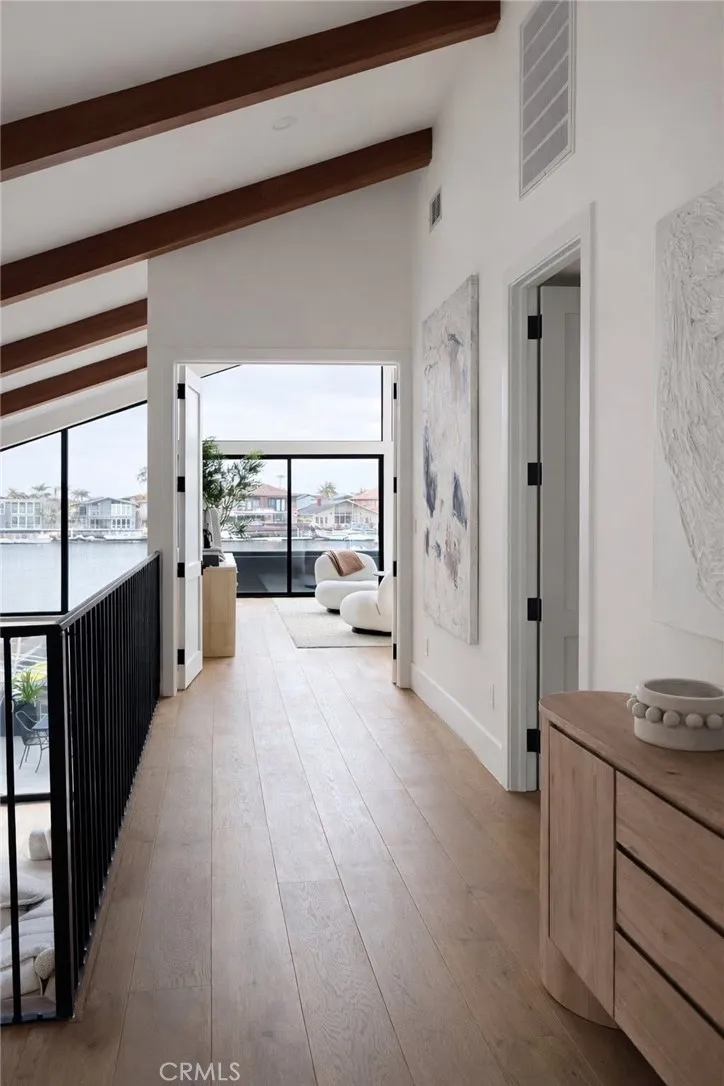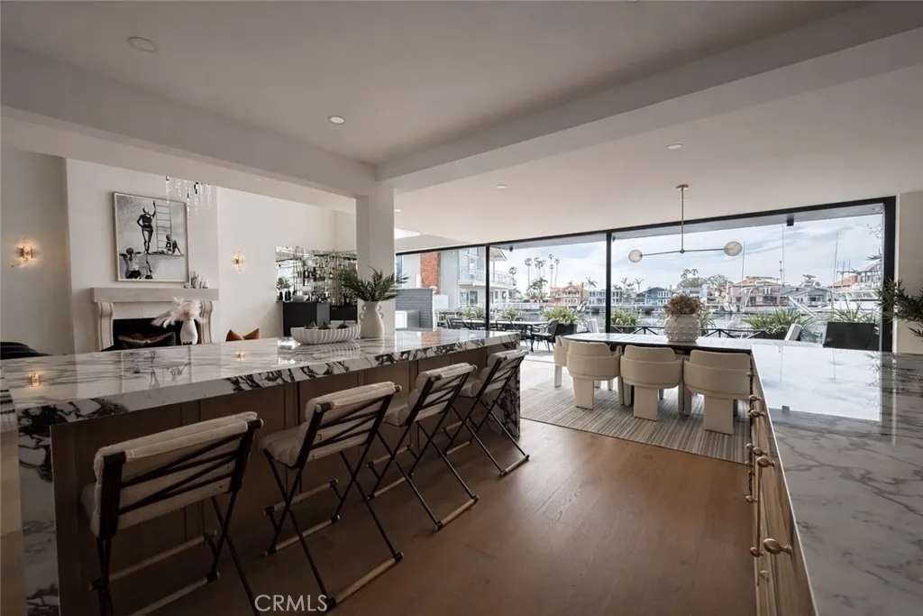 A rare opportunity to own a fully reimagined waterfront residence in Huntington Harbour that has been taken down to the studs and rebuilt with curated designer finishes throughoutcomplete with a complete with a 50 private dock. This home showcases a level of craftsmanship and design rarely found in the harbour, delivering a bespoke, estate-quality living experience. A privately gated entry welcomes you through a charming courtyard and Dutch front door into a light-filled residence defined by soaring vaulted ceilings, exposed beams, and walls of glass framing tranquil water views. The entire waterfront-facing wall is composed of expansive pocket sliding doors that disappear completely, creating a seamless indoor-outdoor environment ideal for elevated entertaining and effortless coastal living. This 5-bedroom, 4.5-bath home is thoughtfully designed for both luxury and flexibility, featuring a main-level ensuite bedroom with its own private entranceideal for guests, extended family, or office usealong with a 3-car garage and laundry rooms on both levels for ultimate convenience. The chefs kitchen is a true centerpiece, equipped with a Viking range, 60 Sub-Zero refrigerator, dual waterfall-edge Viola marble islands, and two fully outfitted pantries. Designer details continue throughout with a temperature-controlled wine display wall and a sophisticated bar finished with vintage mirrored panels and brass accents. Upstairs, the primary suite offers a private waterfront balcony and a spa-inspired bath with dual walk-in showers and an oversized freestanding soaking tub positioned b