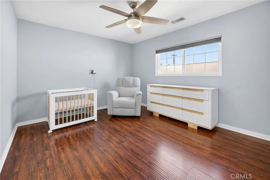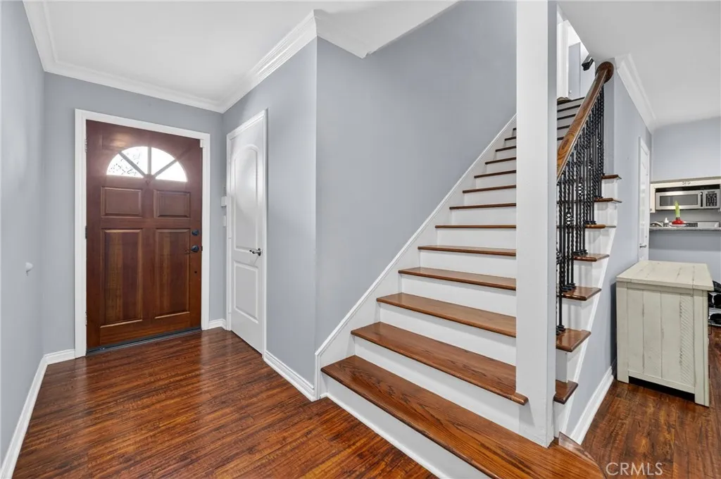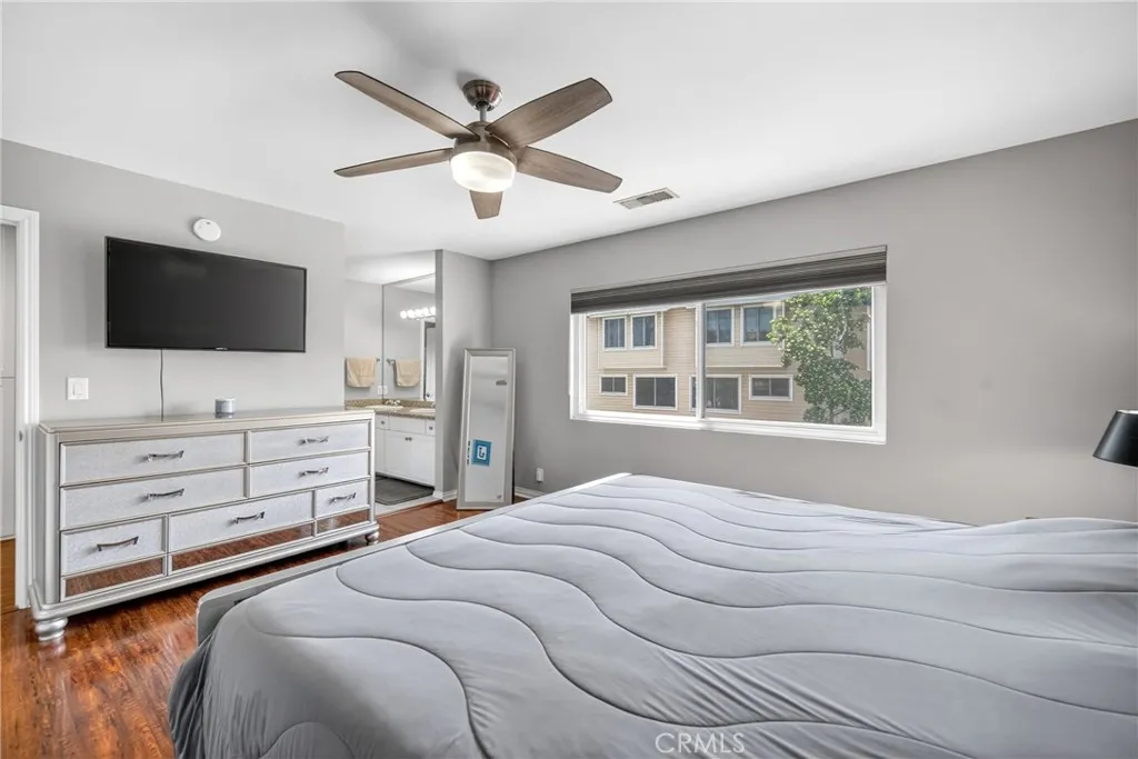 Upgraded 2-bedroom, 2.5-bathroom Lake Balboa townhouse in a private gated community of only eight homes. This move-in ready residence features an open and spacious floor plan highlighted by wide-plank flooring and a custom staircase with wood treads and wrought-iron balusters. The kitchen offers granite counters, a breakfast bar, newer stainless steel appliances, and a newer dishwasher and disposal. The primary suite includes two large walk-in closets and an ensuite bathroom with dual vanities. The second bedroom features its own walk-in closet and easy access to an updated full bathroom and the laundry room. Significant upgrades include energy-efficient dual-pane windows, a new central HVAC system installed in 2024 with a programmable Nest thermostat, Toto toilets, and ceiling fans. Enjoy a semi-enclosed private patio and direct access to a private two-car garage with a wifi-enabled automatic roll-up door. Located near Lake Balboa Park with trails and recreational sports complex. HOA covers water, trash, sewer, and gardening. Easy access to multiple freeways completes this move-in ready home.