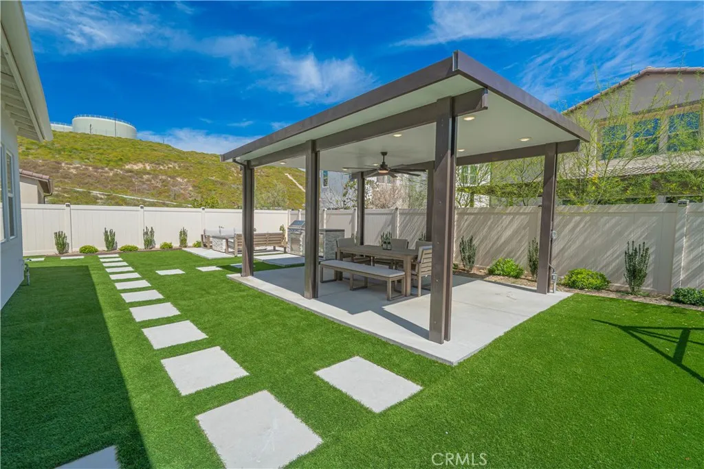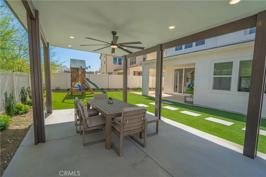 Welcome to one of the most desirable homes in Tesoro Highlandsfeaturing a highly sought-after dual primary suite layout with one full suite upstairs and another downstairs, offering ultimate flexibility for multigenerational living, guests, or private workspace. This nearly new 5-bedroom, 5-bath home offers over 4,100 square feet of thoughtfully designed living space, including a main-level bedroom suite that lives like a second primaryperfect for comfort and convenience without compromise. Step inside to soaring ceilings and a true open-concept layout, where the kitchen, dining, and living spaces flow seamlessly together. The heart of the home opens to a covered California Room, creating the ultimate indoor-outdoor lifestyle ideal for entertaining, relaxing, or enjoying Southern California evenings year-round. Upstairs, a spacious bonus room provides flexibility for a media room, playroom, or second living area. The primary suite is a true retreat, featuring a spa-inspired bathroom and generous walk-in closet, while additional bedrooms are well-appointedincluding a Jack-and-Jill layout designed for both function and privacy. Situated in the highly sought-after Tesoro Highlands community, residents enjoy resort-style amenities including pools, parks, trails, and pickleball courtsbringing a true lifestyle experience right to your doorstep. This is more than just a homeits the next level of Valencia living.