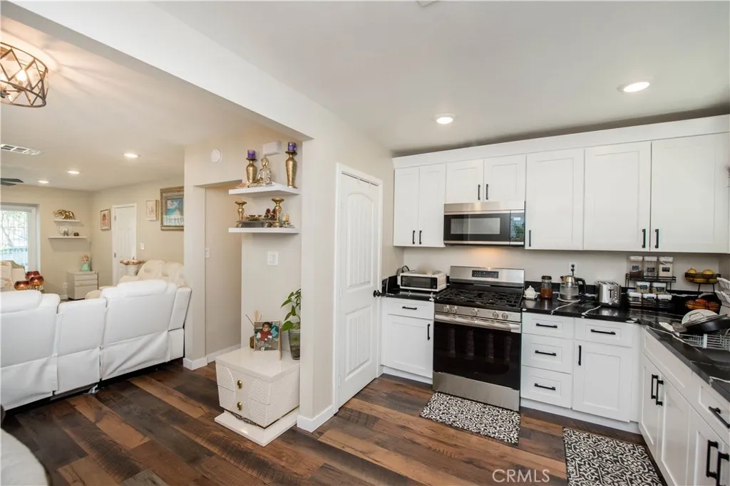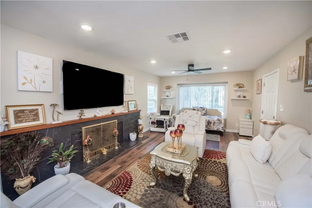 Beautiful 3-bedroom, 2-bath home located in a desirable North San Bernardino neighborhood. on a charming tree-lined street. This fully remodeled property offers extensive upgrades including newer windows, roof, HVAC system, plumbing, electrical, and interior/exterior paint. The modern kitchen features new cabinets and countertops, both bathrooms have been tastefully renovated, and additional highlights include waterproof flooring, new carpet, and updated closet doors. Situated on over a 1/4 acre gated lot, the expansive backyard provides ample RV parking, and offers endless possibilities for outdoor living or future development; build up to two ADUs. Conveniently located near CSUSB, grocery stores, restaurants, and easy freeway access, this home blends comfort, style, and opportunity. Dont miss an exceptional find...all furniture and housewares are negotiable.