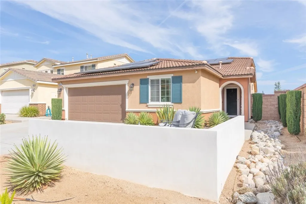 This beautifully updated single-story home is perfectly positioned on a quiet cul-de-sac, offering breathtaking hillside views that stretch for miles. As you arrive, youre welcomed by a spacious front courtyardan ideal spot to relax and take in the peaceful surroundings. Step inside to discover a thoughtfully designed open floor plan, highlighted by a recently remodeled kitchen featuring modern two-tone cabinetry with crisp white uppers and stylish gray lowers, an oversized island, quartz countertops, a designer backsplash, and stainless steel appliances. With abundant storage and seamless flow into the dining and great room, this space is perfect for both everyday living and entertaining. Just off the kitchen, a versatile den provides the perfect space for a home office, gym, or kids study and gaming areaand could easily be converted into a 4th bedroom to fit your needs. The inviting living space is anchored by a modern electric fireplace that adds both warmth and ambiance, creating a cozy yet open feel. The primary suite offers a private retreat with a large walk-in closet, a spa-like bathroom with a separate soaking tub and glass-enclosed shower. Step outside to your backyard oasis, complete with stunning views, a covered patio with lighting and ceiling fans, and low-maintenance artificial turfperfect for relaxing or hosting guests year-round. Additional highlights include updated flooring and baseboards, a spacious laundry room, and energy-efficient features throughoutincluding solar with a low monthly payment, helping you save on utilities while enjoying modern comfort