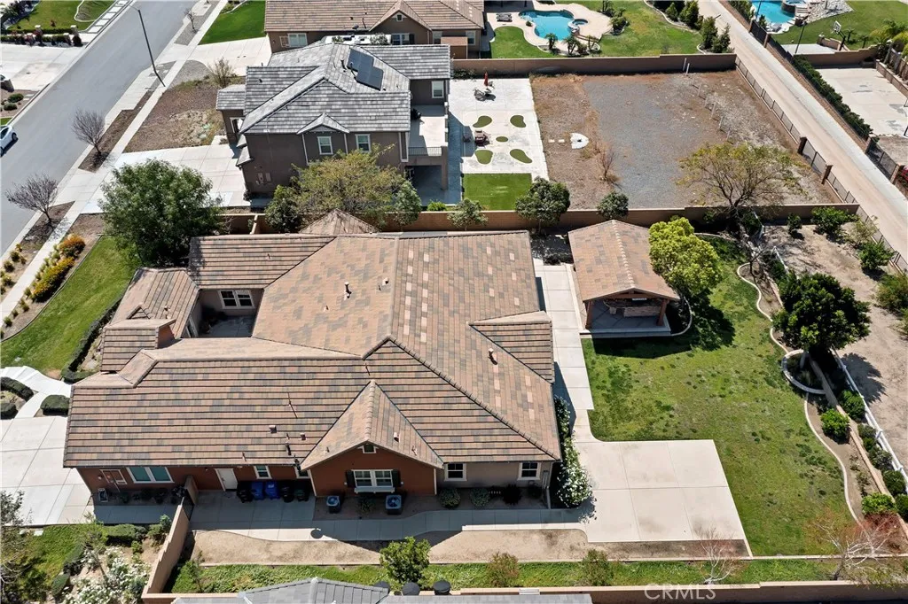 Welcome to this luxurious masterpiece located in the exclusive La Ventana community of Rancho Cucamonga, within the prestigious Etiwanda School District. This beautifully upgraded home offers 5 bedrooms and 4.5 bathrooms across 3,671 square feet of living space, set on an expansive 22,638 sq ft lot. As you enter through the private gate, youre greeted by a charming courtyard surrounded by windows, featuring a multi-slide door that opens seamlessly into the dining room creating the perfect indoor-outdoor dining experience. Inside, wood-look tile flooring flows throughout the home, complementing the open-concept layout and soaring ceilings that create a true sense of grandeur. The chefs kitchen is equipped with stainless steel appliances, a large center island, and a walk-in pantry, all opening to the spacious family room with an elegant accent fireplace and abundant natural light. The primary suite is a serene retreat, complete with sconce lighting, plantation shutters, and a spa-inspired bathroom featuring dual vanities, a dedicated makeup counter, a walk-in tiled shower, a soaking tub, and an expansive walk-in closet. The additional four bedrooms are generously sized, with two en-suite bathrooms and a convenient Jack-and-Jill layout. A versatile bedroom located at the front offers the potential to be converted into a private casita with its own separate entrance. Step outside to your resort-style backyard, designed for both relaxation and entertaining. Enjoy a covered seating area with a fireplace, a built-in outdoor kitchen with BBQ, surround sound, and ample space to add