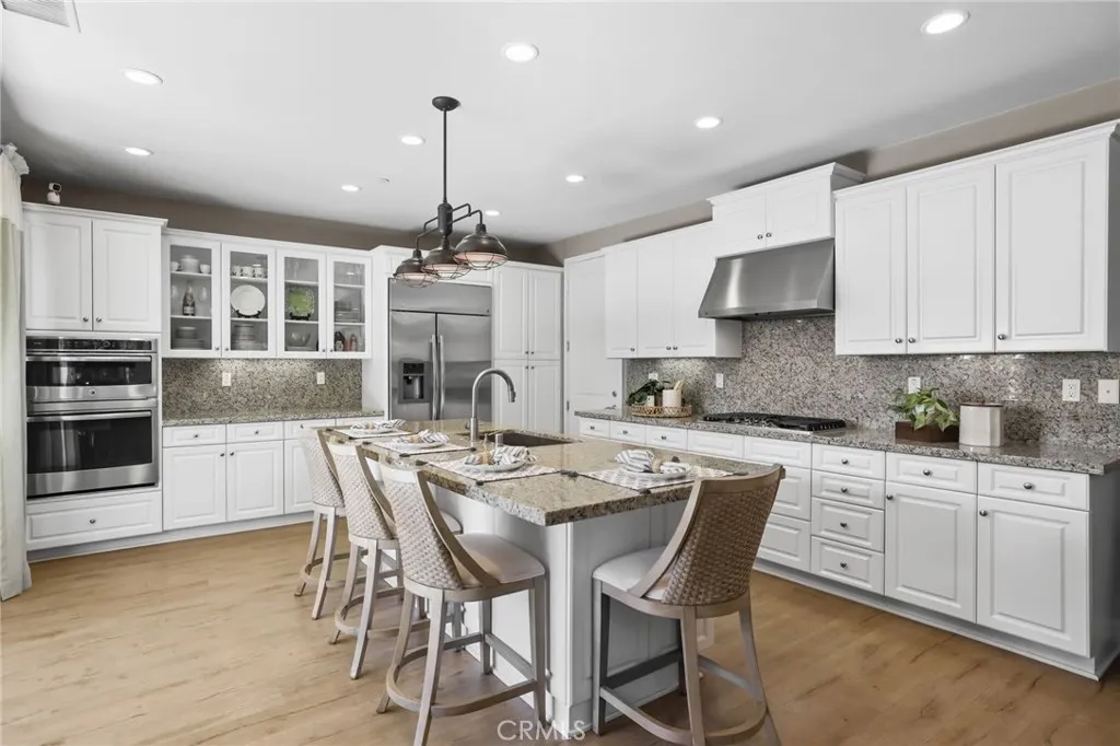 Located in the Prestigious Resort Style Community of Baker Ranch, this Elegant 3 Bed 3.5 Bath Turn-Key Residence has been Immaculately Maintained and upgraded throughout. Embrace the Indoor/Outdoor California Lifestyle. Soaring Cathedral Ceilings, Designer Paint, Upgraded Neutral Toned Wood Look Flooring and Wrought Iron Staircase greet you upon entrance and leads you to the open concept Great Room. Overlooking your Own Private Backyard Oasis, the Great Room is filled with Natural Sunlight and Spacious and accommodating for family gatherings. Continue into the Gourmet Kitchen featuring Upgraded Stainless Steel Appliances, Built-In Refrigerator, Upgraded White Cabinets, Granite Backsplash, Upgraded Sink, Designer Light Fixture and a Massive Center Island w/ Beautiful Granite Counter Tops w/Bar Seating. Continue through the Sliding Glass Panel Door outside to the Private Backyard to enjoy Lush Landscaping, Natural Fruit Trees, Custom Outdoor Lighting and Tranquil Sunsets. Embrace the Indoor/Outdoor California Lifestyle we all love! Upstairs you will find the Multi-Purpose Loft, Convenient Upstairs Laundry and 3 Bedrooms each w/attached individual bathrooms. ThePrimary Suite Retreat is Light, Bright and Spacious and leads to the fully upgraded Spa Like Primary bathroom featuring upgraded Tile Flooring, Neutral Toned Granite Counter Tops, and a Restorative Glass Walk-In Shower. Additional features for the Modern Day Buyer include Water Softener and a spacious Two Car Garage with Epoxy Flooring, Level 2 EV Charger, Built-In Steel Garage Cabinets w/ Work Bench. Ideally located ju