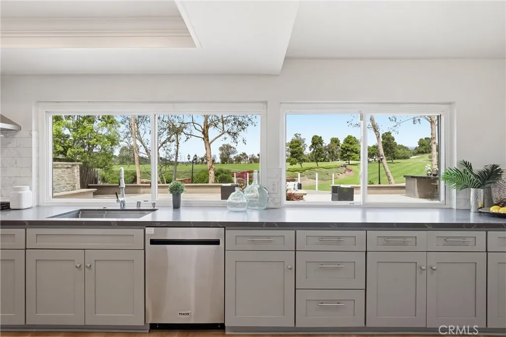Set along the fairways in one of Mission Viejos established neighborhoods, 26925 Via Grande offers the kind of setting that instantly feels calm, open, and elevated. With golf course frontage, a generous 13,000+ square foot lot, and nearly 2,900 square feet of living space, this 5 bedroom, 3 bath home blends comfort, function, and everyday beauty in a way that is hard to find. You can enjoy the golf course view from the kitchen, family room, dining area, primary bedroom, secondary bedroom and of course the backyard. Inside, the home has been thoughtfully refreshed from top to bottom. Fresh paint, brand new luxury vinyl flooring throughout, recessed lighting, updated kitchen and baths, and brand new stainless steel appliances give the entire property a clean, polished feel. The layout is incredibly practical, with a main floor bedroom & bath that works beautifully for guests, extended family, or a private home office. The updated kitchen opens to the family room. Both the living room & family room feature fireplaces, adding warmth and character. Upstairs, the primary suite enjoys its own balcony overlooking the backyard and the golf course, creating a quiet place to start or end the day. Another secondary bedroom opens to a balcony with city light views, adding yet another layer of charm. The two car garage has a new epoxy flooring & modern lights with access to the side yard. The backyard is the entertainer's delight: spacious, scenic, and ready for gathering ,with a firepit, built-in BBQ, brand-new mini fridge, and soothing fountain, all set against the backdrop of the gor