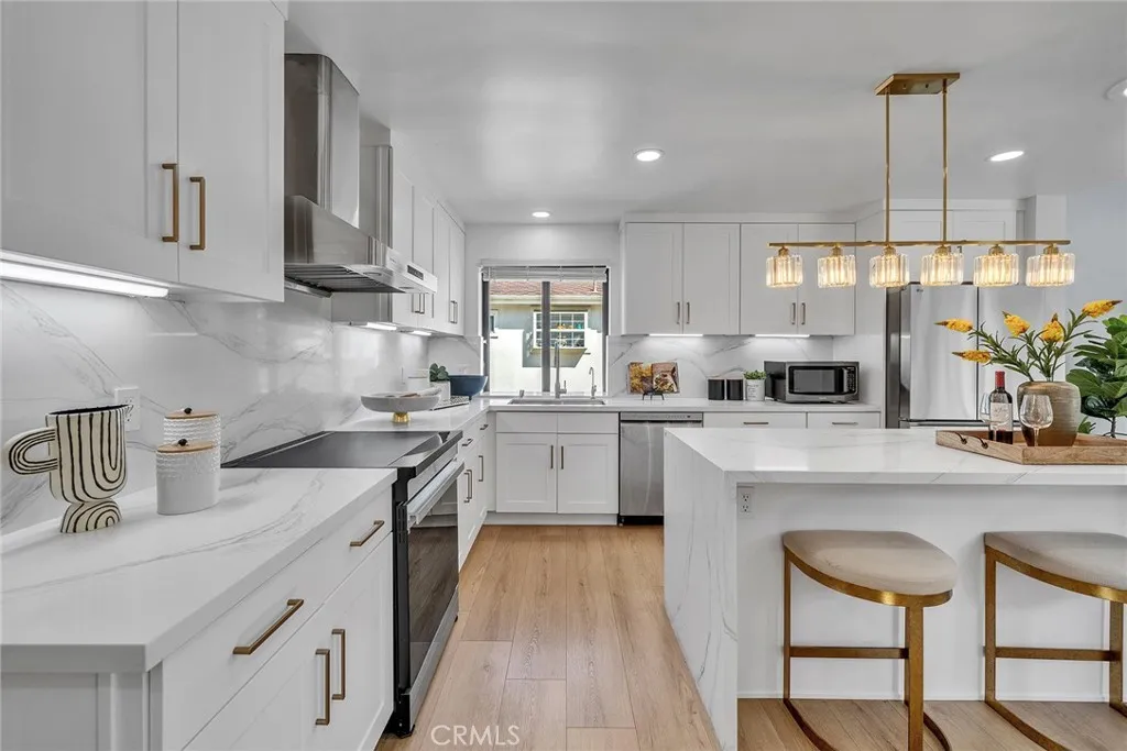Beautifully high-end renovated single-level home. Located within the highly sought-after Arcadia School District. Offering 3 bedrooms, 2.5 bathrooms, a spacious main bedroom separated from 2 other bedrooms. The large living room, a 10 ft high ceiling family room and formal dining area with a luxury designer chandelier are perfect for entertaining. Boasting Striking Curb appeal with attractive landscaping, and a long private gated driveway provides lots of parking space, and leads to the backside 2 detached oversized garage ( with 220volt outlet, ready for EV ) The courtyard and new backyard landscape created a sense and spacious retreat. This home features a premium Metal Roof, Solid interior doors and double pane windows. A no-expense-spared renovation, including plumbing (cooper pipes), electrical wiring and panel, kitchen, bathroom, floors, ductwork, insulation in attic, designer light fixtures, along with interior painting. Detailed invoices are available. This move-in ready with modern upgrades residence features an excellent floor plan with abundant natural light and stylish contemporary finish throughout.