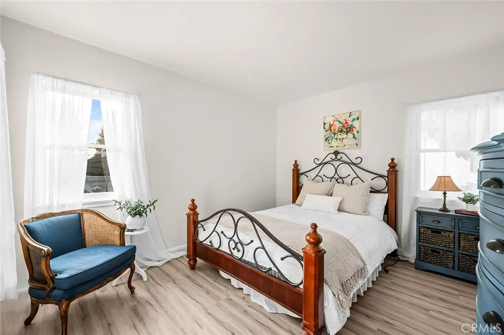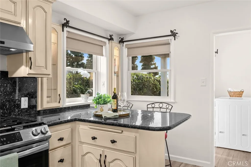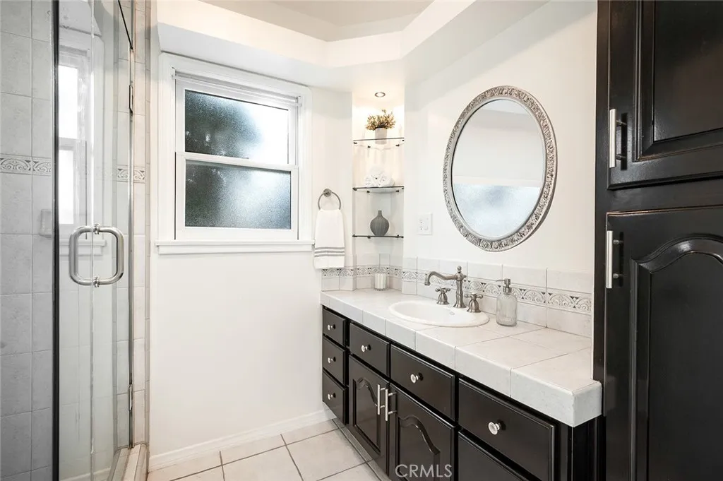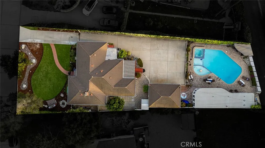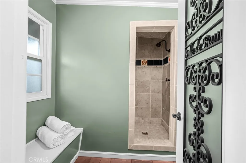 Cherished by the same family for 34 years, this stunning three-bedroom, two-bath residence sits on one of Whittier's most coveted tree-lined streets Cadbury Road where neighbors stay for decades and homes rarely come available. At 1,723 square feet on a lot exceeding 10,000 square feet, this is a property that has been genuinely lived in, celebrated in, and loved. Built in 1940 with fully insulated walls that keep the interior naturally cool and quiet year-round, every window has been replaced and custom blackout shades fitted to each room. The formal living room is anchored by a fireplace with marble surround, flanked by custom built-in bookshelves and a sweeping bay window with built-in seating. The kitchen delivers custom cream cabinetry against polished black granite countertops, and the dining room features elegant wainscoting and built-in glass display shelving. The resort-style backyard is where this property truly sets itself apart. The custom pool features an integrated wading pool with a kids' fountain, and a 12-man spa all surrounded by mature privacy hedging, and an upper entertaining patio shaded by a black and white striped awning with a cast iron bistro set overlooking the pool below. Handcrafted French Quarter iron lamp posts and bougainvillea in full bloom complete a backyard that functions like a private venue. Outdoor furniture included. The crown jewel is the French Quarter-inspired pool house: a fully appointed pavilion with its own kitchenette, full bathroom, additional shower, and dedicated changing room. Sunbrella furnishings convert to a queen-si