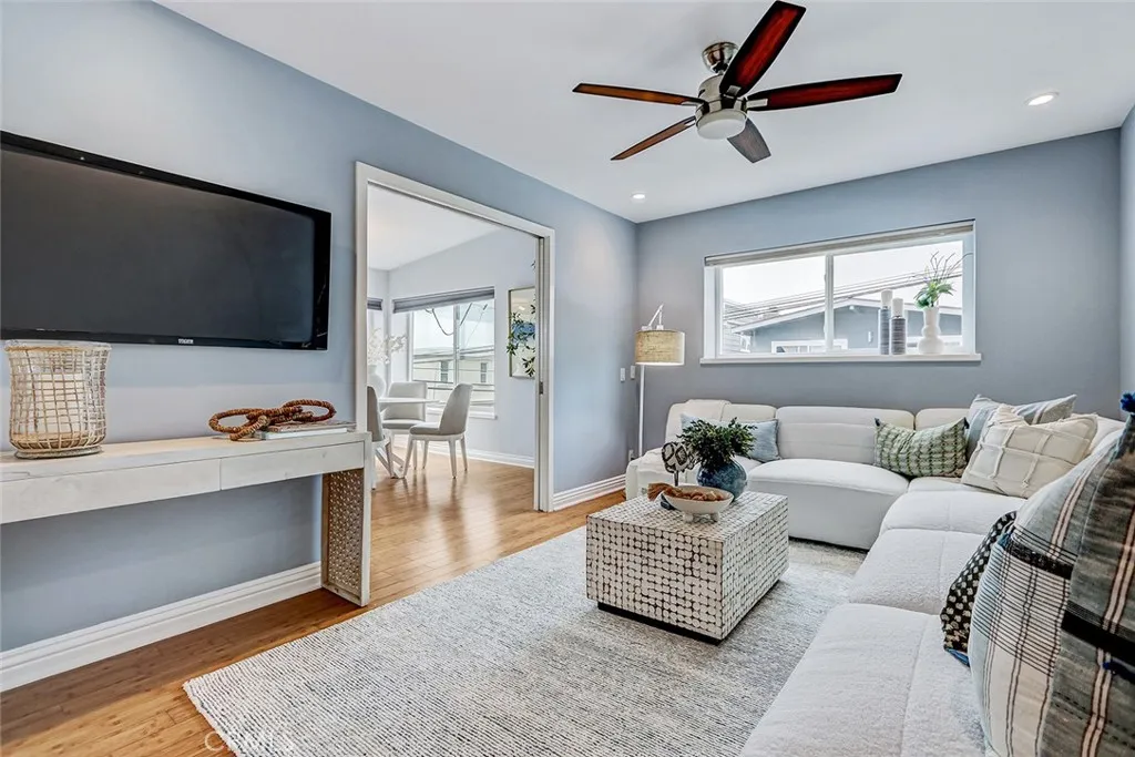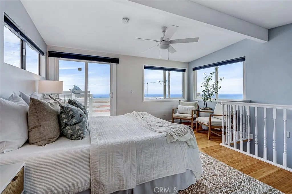 This exceptional single family residence captures sweeping ocean views and offers a highly versatile floor plan designed for effortless coastal living. Featuring 3 bedrooms and 2.5 baths, the home includes a stunning upper level currently staged as a bedroom, opening to a private ocean view deck. This remarkable space may be enjoyed as a serene bedroom retreat or reimagined as a dramatic great room ideal for entertaining, relaxing, and taking in the expansive coastal vistas. Spanning approximately 1,523 square feet (BTV), the interiors are thoughtfully curated with warm bamboo flooring flowing through the main living areas, kitchen, and primary suite. The kitchen is both functional and refined, appointed with granite countertops, stainless steel appliances, and a seamless connection to the living space. A striking fireplace clad in travertine creates a sophisticated focal point, anchoring the room with texture and warmth. The primary bath showcases handcrafted glass tile, offering a spa-like sensibility. Completing the home is a rare four car parking configuration, including a two car garage and two additional driveway spacesan exceptional amenity this close to the beach. A compelling opportunity to enjoy ocean views, flexible living, and an enviable coastal lifestyle.