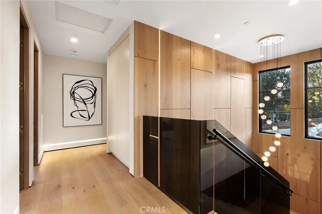 A one-of-a-kind architectural residence in prime Valley Village, adjacent to Studio City. Defined by soaring ceilings, clean lines, and a warm modern palette, the home unfolds with an effortless indoor-outdoor flow. Expansive walls of glass open the main living spaces directly to the backyard, creating a seamless extension of the interior. The residence offers 6 bedrooms and 6.5 bathrooms, including a primary suite with a spa-like bath, dual sinks, a soaking tub, and expansive walk-in closets. Additional features include a complete smart home system, Roman clay plaster finishes by Portola on the walls and ceilings, a spacious laundry and mudroom, a reading nook, a pantry, and thoughtfully designed living spaces throughout. At the center of the home, a beautifully designed kitchen anchors the spacefeaturing custom cabinetry, natural stone countertops with silver travertine, and an oversized island, all oriented toward the outdoors. A striking floating architectural staircase with smoked glass serves as a focal point, framed by floor-to-ceiling wood paneling and a dramatic picture window that draws in natural light, adding a sculptural element to the homes design. Step outside to a privately landscaped backyard designed for both everyday living and entertaining. A pool and spa with a cascading waterfall anchor the space, complemented by a built-in BBQ and multiple areas to gather and dine. A fully detached guest house (ADU) with a metal roof sits at the rear of the property, offering flexibility for extended stays, a private workspace, or separate living quarters. A rare oppo