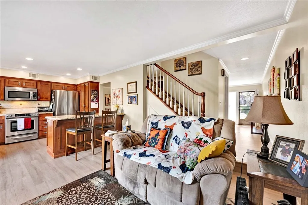 Beautifully upgraded condo in the sought-after Tiburon community. This popular Monterrey model offers 3 bedrooms, 2.5 baths, and approximately 1,656 square feet of well-designed living space. The expansive living room flows seamlessly into the dining area, featuring a built-in buffet with granite top, ideal for entertaining. The remodeled kitchen showcases updated cabinetry, granite counters, recessed lighting, and stainless steel appliances. A tastefully updated half bath is located downstairs, while the upstairs bathrooms features upgraded vanities, granite counter tops and fixtures. Dual pane windows and sliders throughout enhance comfort and efficiency, and the downstairs offers attractive wood laminate flooring for easy maintenance. Upstairs, the spacious primary suite includes a private ensuite bath and generous closet space. Secondary bedrooms are well-sized and versatile. Enjoy air conditioning for added comfort, along with a welcoming brick patio that provides the perfect setting for relaxing or entertaining, with direct access to the garage and laundry area. Ideally located directly across from one of the communitys five pools, Tiburon South also offers two clubhouses and a tot lot. Conveniently situated near shopping and dining, across from Memorial Medical Center, and close to Mile Square Park with golf, sports fields, and open space. Easy access to the 405 freeway and approximately five miles to the beach. A great floorplan, excellent location, and pride of ownership make this a standout opportunity in one of Fountain Valleys most desirable townhome communities