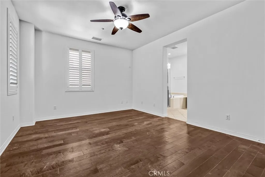 Discover modern living at its finest in this stunning two-story end-unit residence located in the coveted Harbor Station community of Aliso Viejo. Thoughtfully designed and beautifully maintained, this move-in-ready home blends style, functionality, and comfort in every detail. Inside, youll find an inviting open layout featuring soaring ceilings, rich hardwood floors, and custom plantation shutters throughout. The chefs kitchen boasts sleek granite surfaces, stainless appliances, and a center island perfect for preparing meals or gathering with friends. Designer lighting, smooth bullnose wall edges, and refined finishes create a warm and sophisticated ambiance. All three bedrooms are conveniently positioned on the upper level, with the primary suite thoughtfully separated for privacy. The primary bath offers both a soaking tub and a walk-in shower, along with an oversized closet for ample storage. A built-in desk and cabinetry on the landing provide an excellent space for work or study. This home is packed with premium upgrades, including ceiling fans in every bedroom and living area, epoxy flooring in the garage, and a motorized screen that allows fresh air to flow through. Abundant storage options can be found throughout, from extra kitchen cabinetry to an additional linen closet and expanded master closet. Set within a distinctive enclave surrounding a Jack Nicklausdesigned private golf course, this address enjoys proximity to the Aliso Viejo Country Club, Conference Center, and Aquatic Center. With Laguna Beach just four miles away and convenient access to John Wayne A