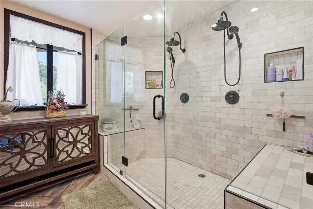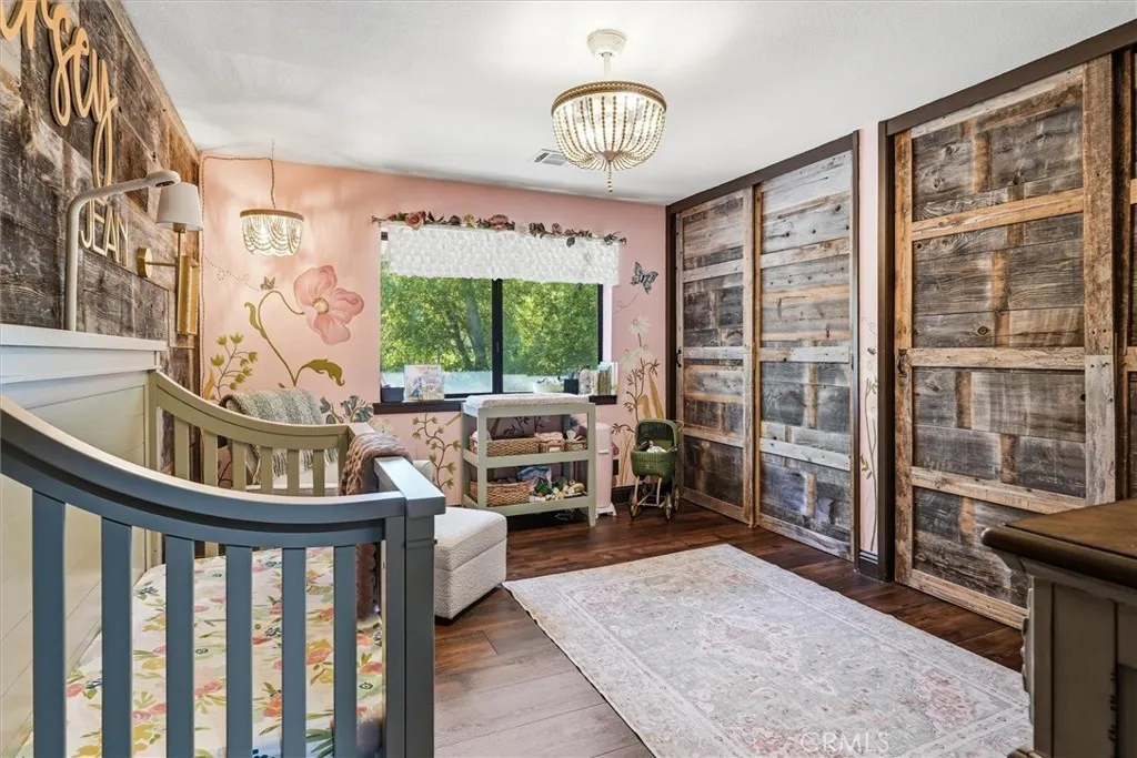 Tucked into a peaceful, storybook setting with a year-round creek, this truly custom property blends charm, craftsmanship, and functionality. The usable, fenced land features raised garden beds, a greenhouse, mature fruit trees (apple, peach, plum, mandarin), and a self-watering system, all bordered by fragrant jasmine. A newer 40-panel ground-mounted solar system adds efficiency. The fully permitted barn ADU (5552A) offers beautifully finished additional living space with quartz countertops, white cabinetry, wood accents, and a walk-in shower, ideal for guests, rental income, or multi-generational living. The property also offers space for a future second residence, with potential for a separate driveway. The main home showcases custom design throughout, with brickwork and reclaimed wood accents creating a warm, timeless feel. The kitchen features high-end appliances, soft-close cabinetry, leathered granite counters and backsplash, copper sinks, and a large island, opening to a cozy sitting area and formal dining with built-in buffet. Tall ceilings, wood flooring, and a striking fireplace anchor the living space. The primary suite is a private retreat with an oversized walk-in closet and spa-like bath featuring a handcrafted soaking tub from Australia, dual-head walk-in shower, and private toilet room. Additional highlights include a finished basement, updated plumbing and electrical, and outdoor spaces overlooking the creek.