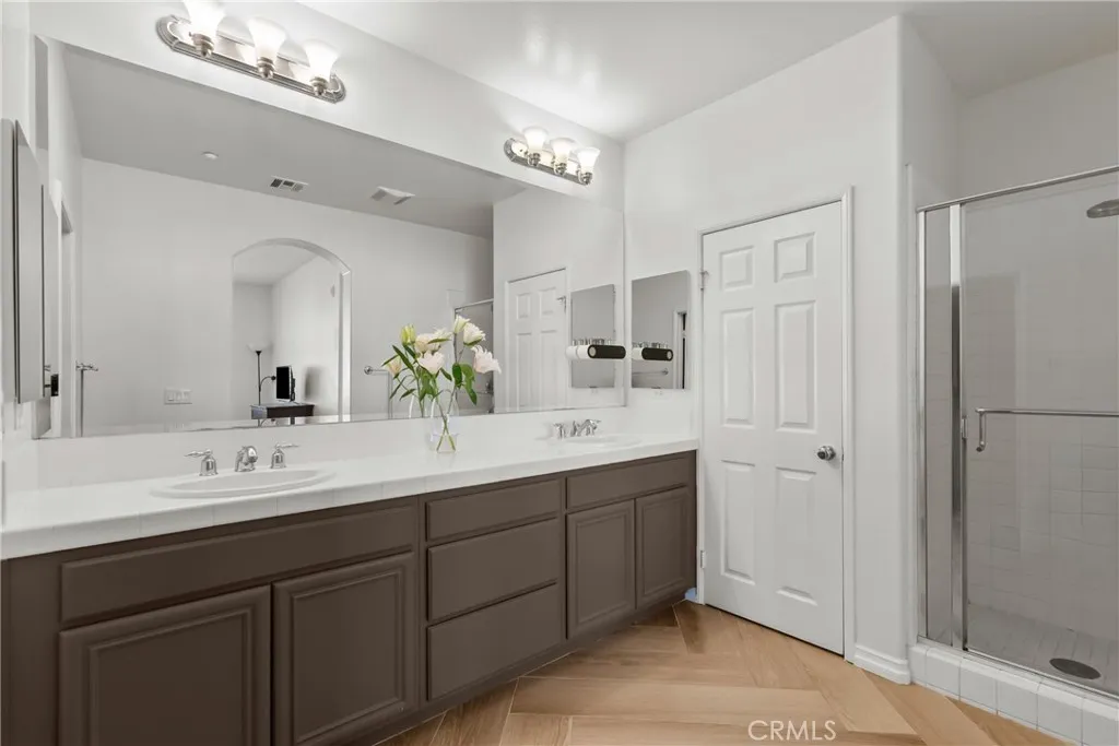 Discover the perfect blend of style, comfort, and convenience in this beautifully updated home, ideally situated in the picturesque and highly desirable community of Stevenson Ranch. Stunning updates include elegant chevron flooring, the kitchen is adorned with sleek quartz countertops, modern cabinetry, and premium appliancesall newly completed just last year. Enjoy peaceful mornings or unwind in the evening on your private balcony overlooking a tranquil greenbelt, located just off the dining area for seamless indoor-outdoor living. This inviting residence offers 2 spacious bedrooms, 2 tastefully remodeled bathrooms, and 1,130 SqFt of well-designed living space. Additional highlights include an in-unit laundry area and a convenient 2-car attached garage. Residents of the Treana neighborhood enjoy fantastic amenities, including a sparkling community pool and spa. With close proximity to shopping, dining, top-rated schools, and easy freeway access, this home delivers both comfort and an exceptional lifestyle. Opportunities like this dont come oftenmake it yours before its gone.