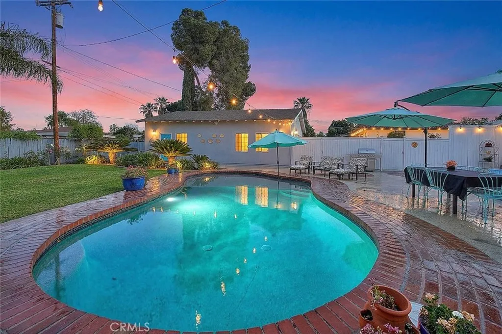 FABULOUS & WONDERFULLY upgraded SINGLE story home located on a sprawling 15,246 sq ft lot. (per tax roll) The amenities of this highly desirable property are many! There are 4 bedrooms including the primary & 3 bathrooms. Exterior features include RV parking, oversized garage w/pull through door, a very private backyard that is ideal for entertaining with inground pool, raised deck for outdoor dining, an expansive lawn area, mature trees, above ground spa, firepit & more! Interior has been remodeled throughout including a GORGEOUS kitchen done in light & bright white cabinetry with a skylight that brings in soft natural light, Carrera marble counters & dramatic blue glass subway tile backsplash. Stainless appliances including trash compactor, wine frig, oven, microwave, dishwasher & 5 burner cook top w/overhead hood. Built-in subzero refrigerator matches the cabinetry. Overhead beam accents add a designer touch to the kitchen. All bathrooms have been upgraded & the guest bathroom is done in a contemporary design showcasing a large walk-in shower, dramatic tile accent wall & contemporary light fixture that further enhances the dcor. The smaller guest bathroom also features a beautiful tile design in the shower. There is a formal dining room as well as a generous space for casual informal dining right off the kitchen adjacent to the living room that could be used for a pool table or multi-purpose area. This space has built-in seating by the windows. There is also a breakfast nook with attractive accent wall design & overhead ceiling fan. 3 indoor areas to dine! An inviting fi
