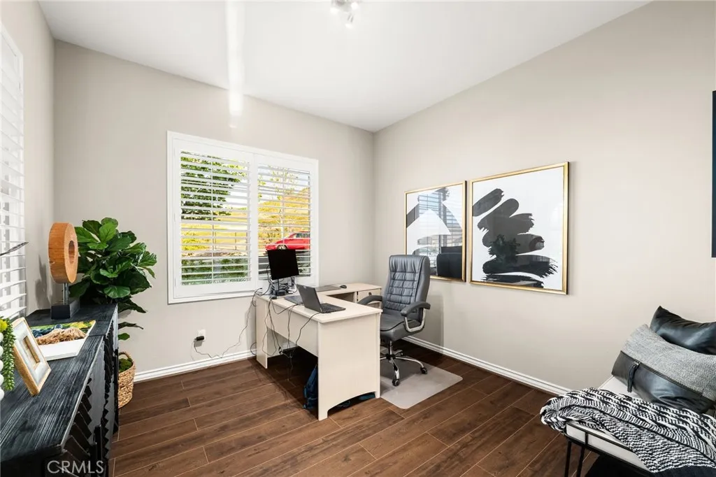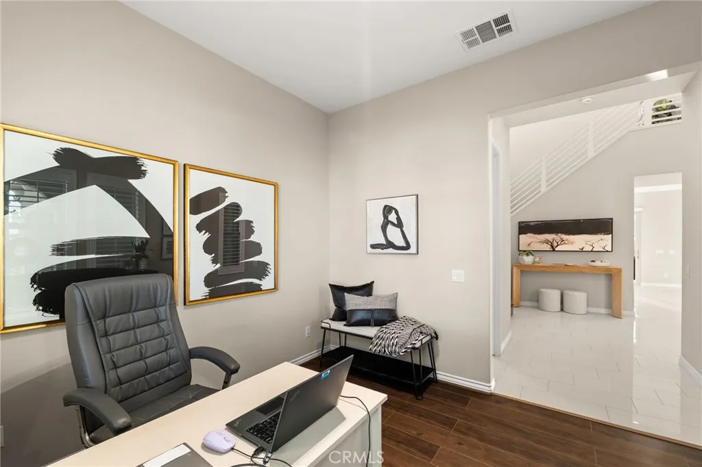 Hidden within the gated hilltop community of Sierra Bella, 2413 Sierra Bella Drive offers a refined blend of luxury, comfort, and functionality. Surrounded by rolling hills and filled with natural light, this home provides a serene setting with the added benefit of private, controlled access. Spanning approximately 3,662 square feet, the residence features 5 bedrooms, 4.5 bathrooms, a formal office, and a versatile loft. Upon entry, soaring two story ceilings and an open layout create a seamless flow between the great room, dining area, and kitchen, ideal for both everyday living and entertaining. The kitchen is bright and clean lined, featuring Monogram appliances, a built in refrigerator, designer pendant lighting, an oversized center island, and Quartz countertops throughout the home. Just off the dining area, the backyard patio showcases a fireplace and automatic motorized blinds, creating a comfortable indoor outdoor living experience. The backyard is designed with low maintenance oversized pavers, offering a modern aesthetic and a blank canvas for future additions such as a pool or expanded outdoor space. The main level includes a private guest suite, dedicated home office, and powder bath. Upstairs, a spacious loft with a balcony provides additional living or flex space. The primary suite captures scenic hill views and flows into a well appointed bathroom with dual vanities, soaking tub, separate shower, private water closet, and a generous walk in closet. Three additional bedrooms and two bathrooms complete the upper level. Additional features include a paid off six