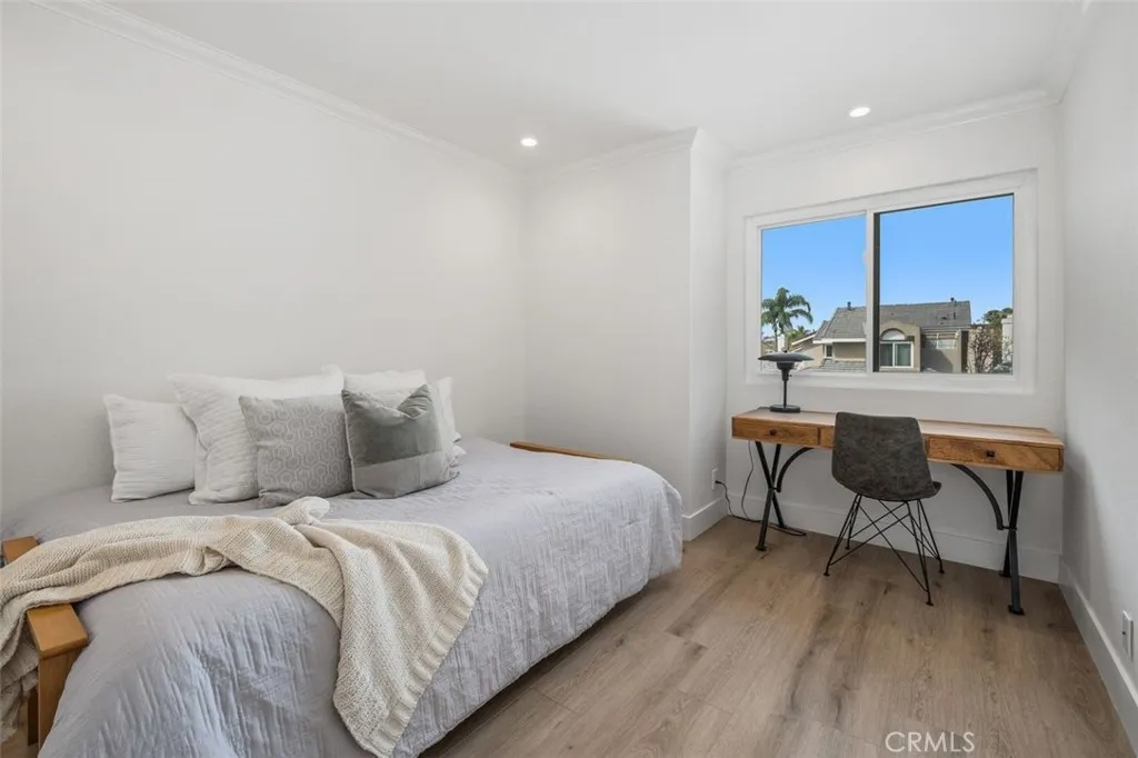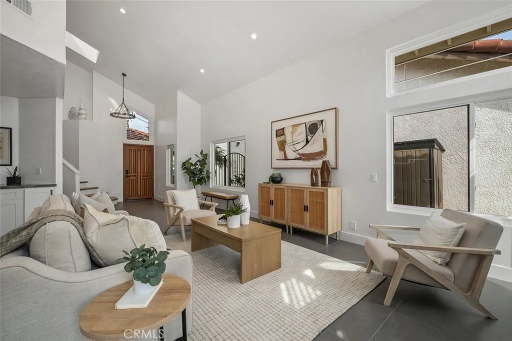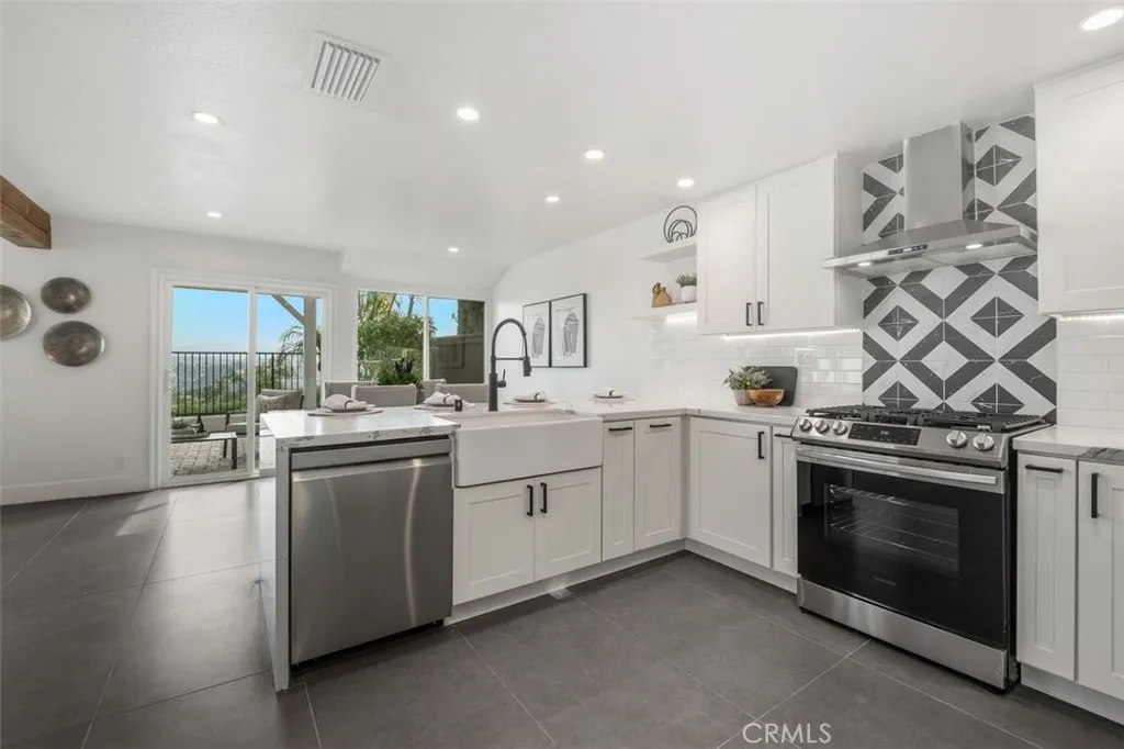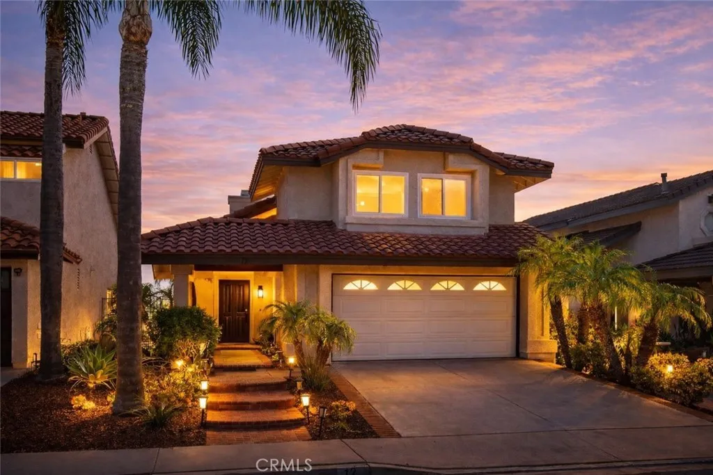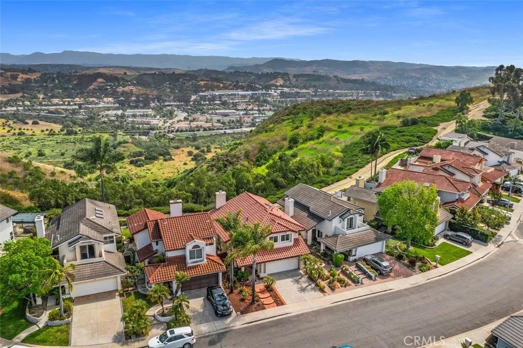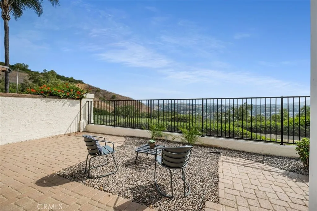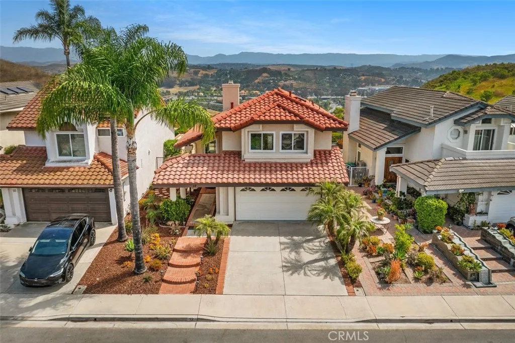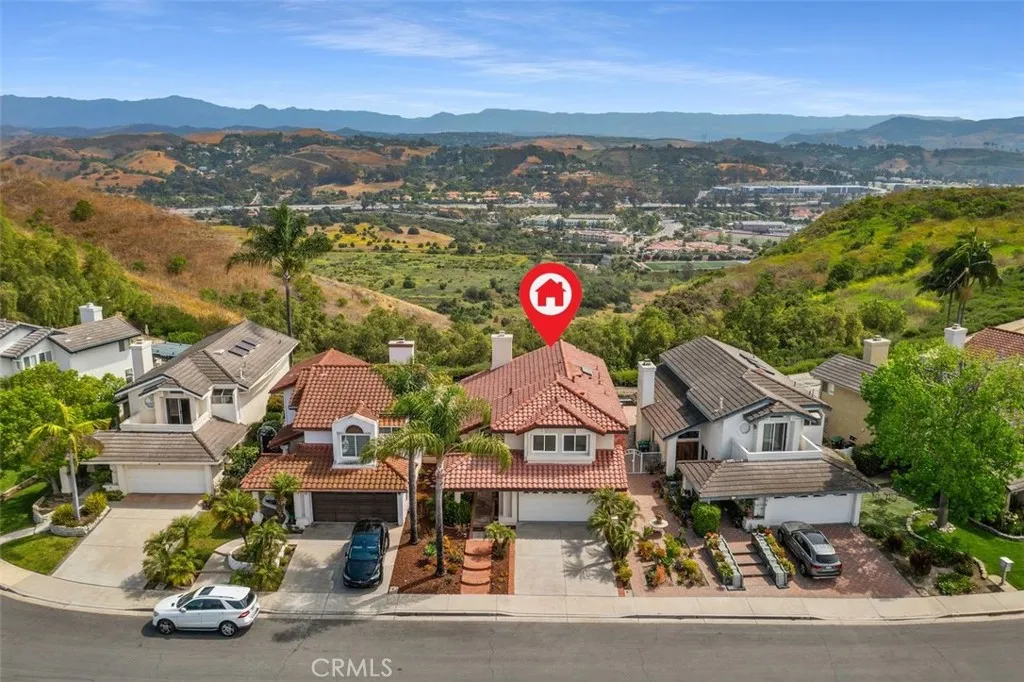 PANORAMIC VIEWS! Located on a quiet cul-de-sac in the highly desirable Mariners Bluffs neighborhood, this beautifully remodeled home offers breathtaking city lights, hills, and mountain views. With no homes behind, the property backs directly to scenic horse and hiking trails and lush rolling hills, providing exceptional privacy and stunning vistas from both levels. The interior has been completely remodeled with a modern aesthetic, featuring an open-concept living room with a remodeled fireplace, brand new kitchen cabinetry, quartz countertops, a designer tile backsplash, and a large island with breakfast bar seating. A separate dry bar adds to the homes entertaining appeal. High ceilings, recessed lighting, gorgeous tile flooring, and new light fixtures enhance the open and airy feel throughout. Upstairs, the primary suite includes a private balcony, perfect for enjoying sunrise views, and a fully remodeled en-suite bathroom with dual sink vanity and a walk-in shower. The upstairs guest bathroom and downstairs powder room have also been tastefully renovated. The backyard features fresh landscaping and a covered patio, creating the perfect space to relax or dine, enjoying city lights at night and serene rolling hills during the day. Additional highlights include PEX plumbing, dual-pane windows and a 2-car attached garage with epoxy floors and plenty of storage. Ideally located close to shopping, dining, freeway access, and just a short drive to sunny beaches.