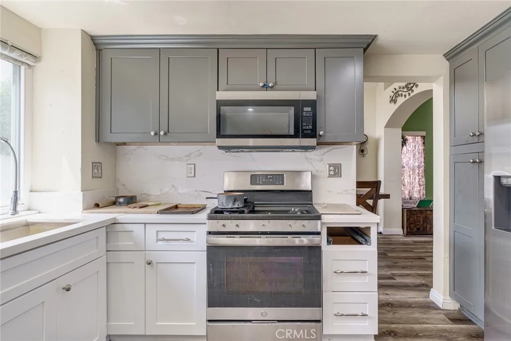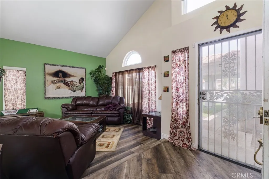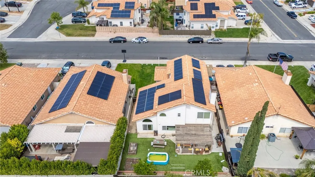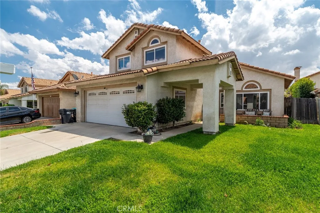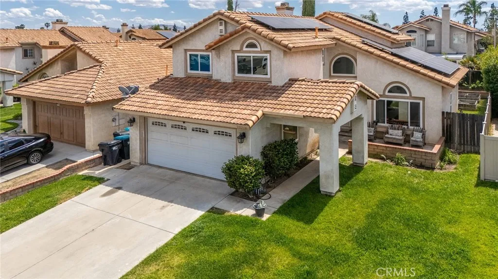 Excellent opportunity for a first-time home buyer, investor, or family looking for expansion. With one bedroom and one-bathroom downstairs, this home offers a multigenerational experience. Formal living and dining room option. Open floorplan. Vinyl plank flooring type throughout. Upgraded kitchen has quartz countertops and recessed lighting. 3 bedrooms upstairs and 2 full bathrooms upstairs. The master bedroom has a separate retreat of its own. Third bathroom has been remodeled to include a walk-in shower. Newly installed windows, tankless water heater and irrigation system. Backyard has been augmented with turf and contains mature fruit trees. (Lemon, orange, Pomegranates tree, nectarine, with artichoke in the front.) Buyer to assume the solar lease. No HOA fees. Close to parks; schools; restaurants; banks; shopping malls; Costco; WinCo Foods. Easy access to 215/60 Fwy. About 6 miles from UCR. This home will not last.