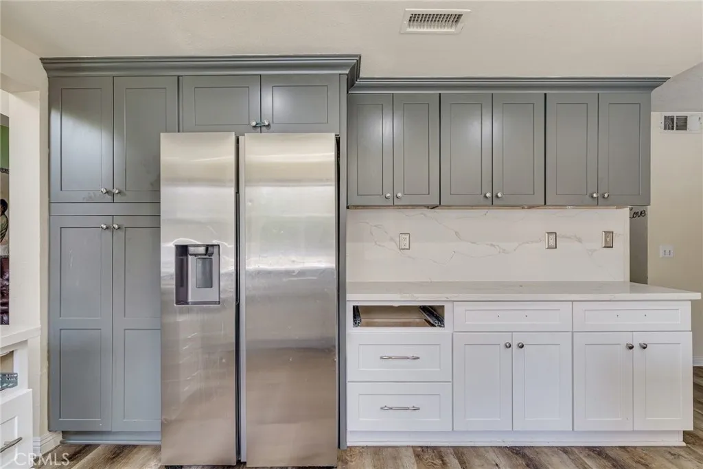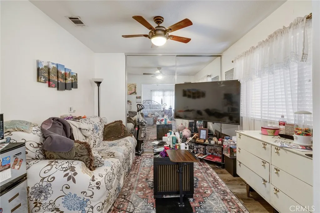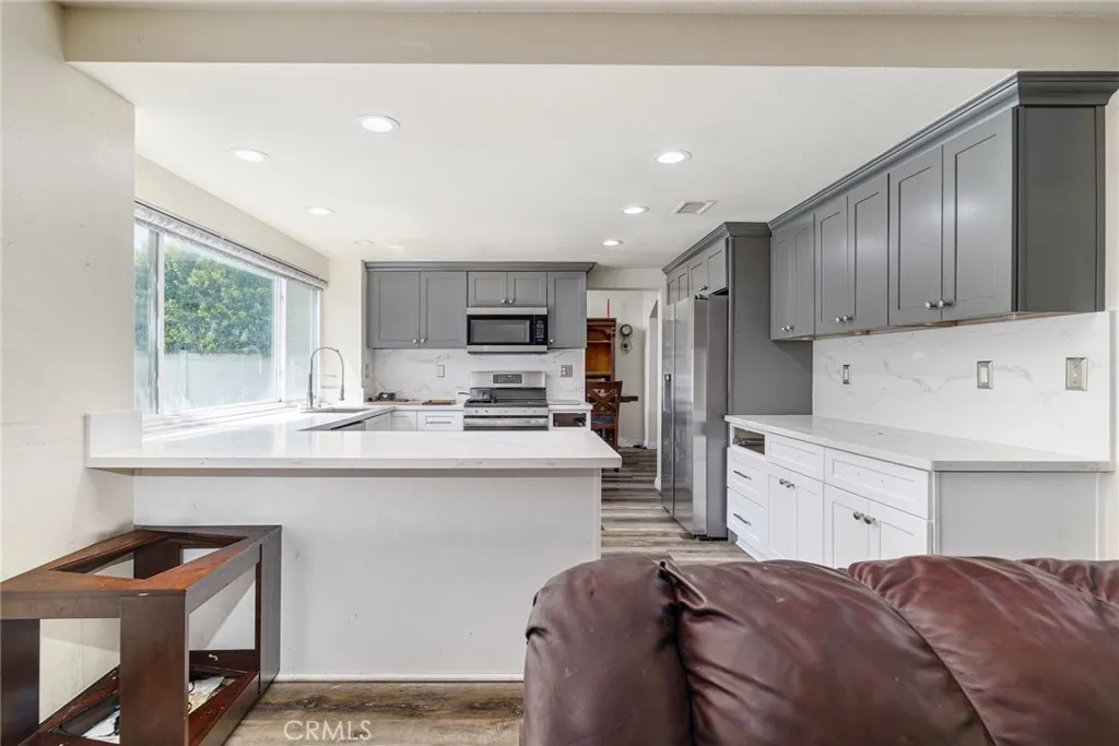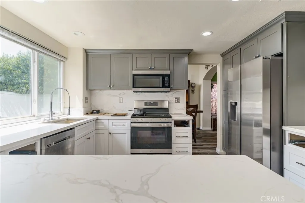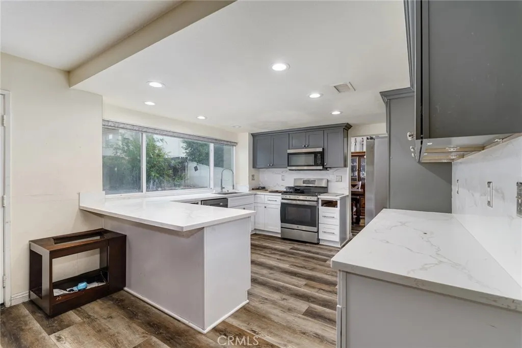 Excellent opportunity for a first-time home buyer, investor, or family looking for expansion. With one bedroom and one-bathroom downstairs, this home offers a multigenerational experience. Formal living and dining room option. Open floorplan. Vinyl plank flooring type throughout. Upgraded kitchen has quartz countertops and recessed lighting. 3 bedrooms upstairs and 2 full bathrooms upstairs. The master bedroom has a separate retreat of its own. Third bathroom has been remodeled to include a walk-in shower. Newly installed windows, tankless water heater and irrigation system. Backyard has been augmented with turf and contains mature fruit trees. (Lemon, orange, Pomegranates tree, nectarine, with artichoke in the front.) Buyer to assume the solar lease. No HOA fees. Close to parks; schools; restaurants; banks; shopping malls; Costco; WinCo Foods. Easy access to 215/60 Fwy. About 6 miles from UCR. This home will not last.