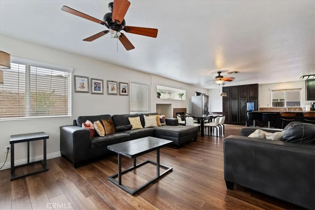 Solar-powered two-story home offering five bedrooms and three baths, including a convenient main-level bedroom and full bath. This well-designed floor plan provides generous living space throughout, with a layout that balances comfort and everyday functionality. The kitchen features an island, granite countertops, and a breakfast bar, and opens to a bright living area with a fireplace, creating a warm and inviting setting. Upstairs, a loft offers additional living space ideal for a variety of uses. The primary suite includes an oval soaking tub with a separate shower, while the backyard provides a private outdoor space suitable for relaxing or entertaining. Located within the Moreno Valley Ranch community, residents enjoy access to amenities including a pool, fitness center, and a private recreation center, along with nearby parks, schools, a college, and convenient access to shopping and dining.