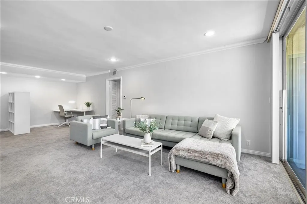 Enjoy a rare opportunity to own a fabulous spacious turnkey condo in the heart of Brentwood Village. Located in 5 acres of landscaped grounds with ponds, a large picnic area, dog park & ample parking; a serene atmosphere that is almost impossible to find. This resort like setting features two beautiful pools & a spa. Situated within walking distance to shops, restaurants & parks, & only minutes from the UCLA campus & the 405 Freeway. Enter this quiet front unit & you will be amazed by the spacious, light & large open floor plan, with views to the pools & lush landscaped gardens.The flowing living room not only boasts an ample dining area but also has a large bonus area ideal for an office. Sliding doors allow access to the spacious, enclosed & very private sunny patio perfect for entertaining family & friends.The dining area is a good size & the fully remodeled kitchen, with quartz countertops, allows space for a breakfast table. Sliding door to the private patio too allow easy access for those BBQ days! The large bedroom features a custom built walk-in closet, a second double closet & sliding door access to the patio. The spacious remodeled bathroom has a separate shower & bathtub, dual sinks & marble countertop. Secure garage parking, with extra storage, A/C, recessed lights, new furnace and electric panel, plus much more - an opportunity not to be missed!