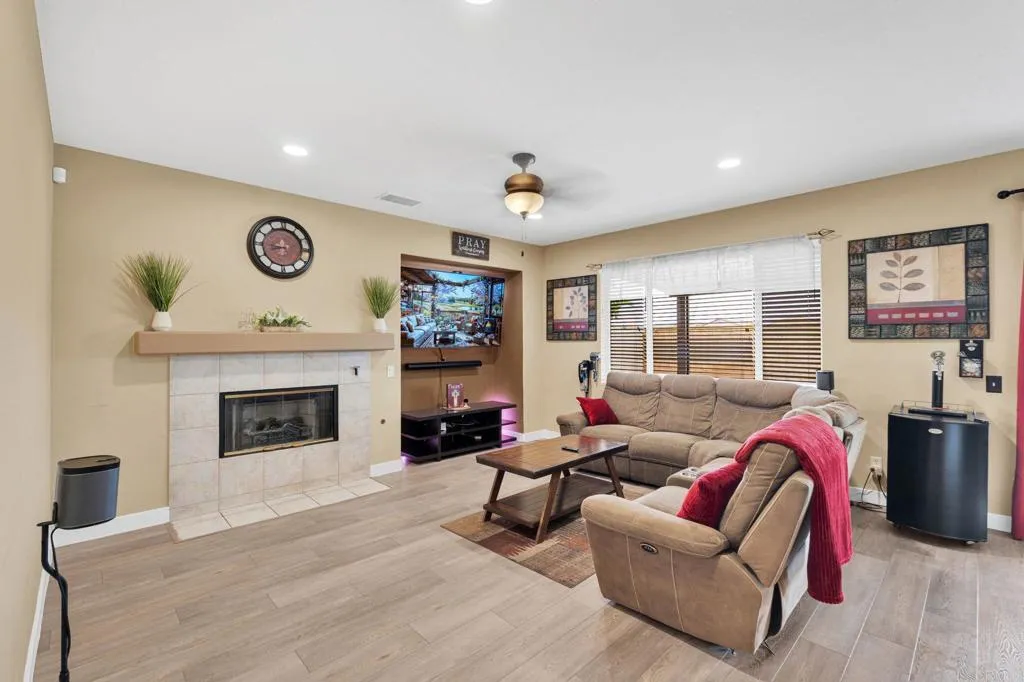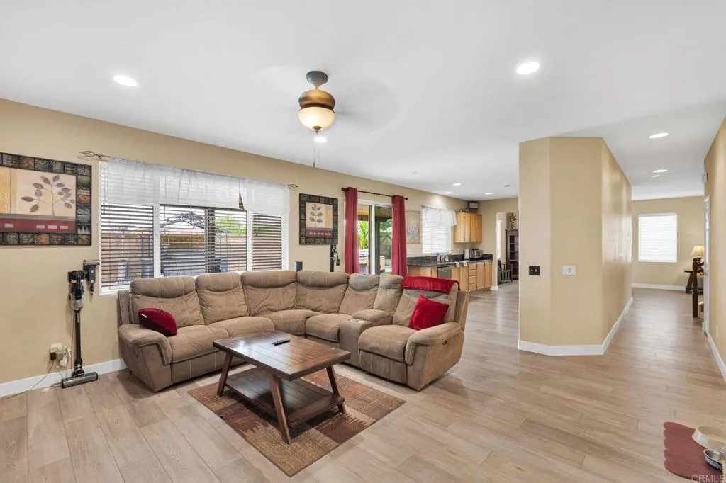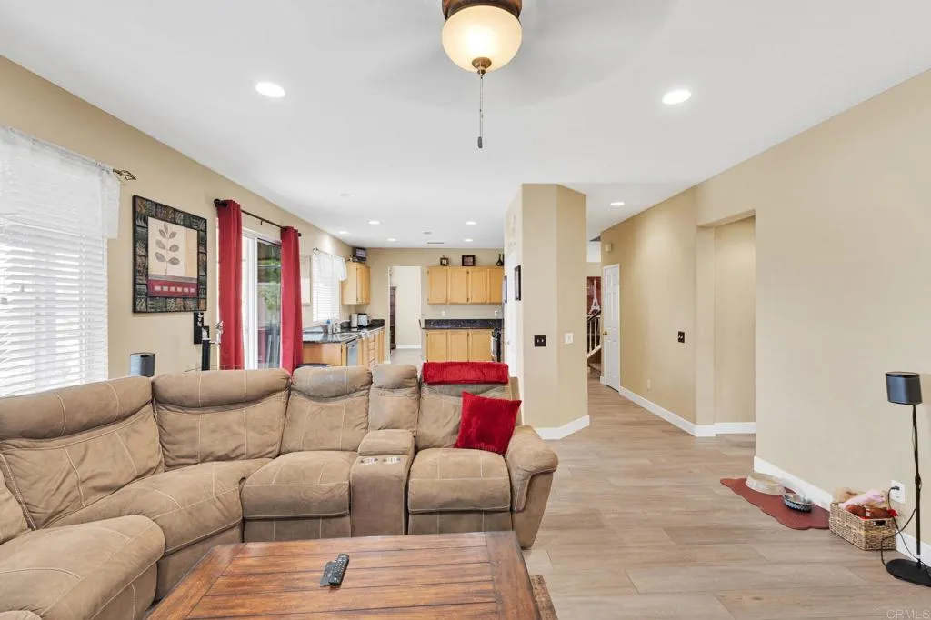 Welcome to 17866 Robusta, located in the highly sought-after gated community of Victoria Grove, where comfort, space, and lifestyle come together. This beautifully updated home offers a rare six-bedroom floor plan, perfect for growing families or multi-generational living. A convenient downstairs bedroom and full bathroom provide flexibility for guests or extended family. Inside, youll find a bright and open layout designed for both everyday living and entertaining, featuring new flooring throughout, including stylish wood-look tile, laminate, and plush new carpet in the bedrooms. Upstairs, a spacious loft creates the perfect bonus area for a media room, home office, or play space. The primary suite is a true retreat, complete with a large walk-in closet and an ensuite bathroom featuring dual vanities, a soaking tub, and a separate shower. Step outside to your private backyard oasis, where you can relax in the jacuzzi and enjoy a variety of fruit trees currently bearing fruit, including Asian pear, apple, guava, peach, and nectarine. Its the perfect setting for outdoor gatherings or quiet evenings at home. The three-car garage offers ample space, including additional storage for all your needs. Living in Victoria Grove means enjoying resort-style amenities, including a community pool and spa, beautifully maintained grounds, and scenic surroundings. The neighborhood also boasts stunning views overlooking Lake Matthews and access to top-rated schools, including one of the highest-rated elementary schools in Riverside County. An added bonus: the home is equipped with solar tha