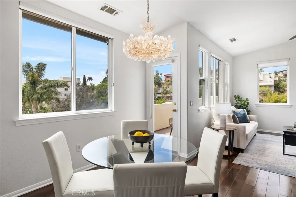 Panoramic views of Point Loma, San Diego Bay, and the Pacific Ocean define this exceptional three-story end-unit townhouse. A dramatic entry opens to stunning water views and a light-filled living space designed for both comfort and entertaining. The home features only 1 common wall, 3 bedrooms, 2 bathrooms, a gourmet kitchen with premium appliances, and a spacious living/ dining area that opens to a balcony with bar seating overlooking the Bay. The private primary suite occupies its own floor and features a large bathroom and walk-in closet. Freshly painted with high-end upgrades throughout include cherry hardwood flooring, Miele appliances, Sub-Zero refrigeration, Hunter Douglas blinds, and Hansgrohe fixtures. The oversized two-car garage includes epoxy flooring and custom cabinetry. Ideally located near Little Italy, Mission Hills, Downtown, and San Diego Bay, with quick freeway access while maintaining a private, tucked-away feel. This is the one youve been waiting for; where views, luxury, and location all come together.