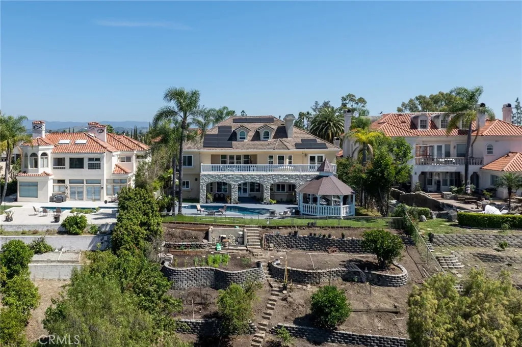 This stunning custom-built French Tudor estate is nestled in the highly sought-after equestrian community of Nellie Gail Ranch, in the heart of South Orange County. Showcasing timeless architecture and exceptional craftsmanship, this impressive residence offers an unparalleled blend of elegance, comfort, and lifestyle. Spanning approximately 6,826 square feet on an expansive 21,200 square foot lot, the home features 6 spacious bedrooms including a desirable main-level suite, 6.5 bathrooms, a separate entry casita, private office, three fireplaces, and two balconies. The thoughtfully designed floor plan provides both functionality and sophistication for everyday living and entertaining. A gated driveway enhances privacy while offering ample parking and a secure space for outdoor play. Upon entry, you are welcomed by soaring ceilings and a dramatic winding staircase that sets the tone for the homes warm and inviting ambiance. Designed to take full advantage of its surroundings, the backyard and upper-level balconies showcase breathtaking west-facing panoramic views of rolling hills and vibrant sunsets. The resort-style outdoor space is an entertainers dream, complete with a sparkling pool and spa, gazebo, and built-in BBQ perfect for hosting gatherings or enjoying peaceful evenings at home. Residents of Nellie Gail Ranch enjoy scenic walking paths, equestrian trails, and a true sense of community, all while benefiting from convenient access to the 73 Toll Road for an easy commute bypassing the congestion of the 5 and 405 freeways. This is a rare opportunity to own a remarkabl