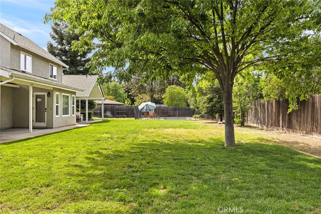 Situated on .43-acres at the end of a nice quiet cul-de-sac is this beautiful home with fresh interior paint and new carpets. It offers 4 bedrooms and 3 bathrooms across 2,578 square feet of living space. The home features a downstairs primary suite with walk-in closet, and another large room previously used as an office, but would also make a great bedroom. Upstairs you will find two additional large bedrooms and a full bathroom. The formal dining room is perfect for entertaining, accompanied by a separate living room and a comfortable family room right off the kitchen. The sunroom/breakfast nook offers access to the huge backyard which boasts two spacious covered patios and an inground swimming pool. There is lots of storage throughout the home with big closets and plenty of cupboard space in the nice big laundry room with deep sink. On top of that is a generous portion of attic storage with stand-up headroom and is easily accessible. Owned solar helps keep the utility bills down and the 3-car garage offers even more storage and a place to park your cars out of the weather. Don't miss your opportunity to live it up in this highly desirable Northwest Chico neighborhood.