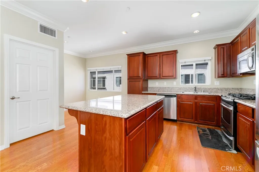 Rare End-Unit Gem in the Heart of Northridge Experience the pinnacle of luxury living in Northridges highly sought-after Vantaggio community. As a coveted end unit, this home is flooded with natural light from extra windows on three sides, creating a bright and airy sanctuary that interior units simply can't match. Premium Interiors: The main level is a showcase of elegance, featuring rich hardwood floors, sleek granite countertops, and premium maple cabinetry. The open-concept design flows seamlessly into the primary suite, which serves as a true retreat with a deep spa tub and a generous walk-in closet designed for ultimate relaxation. Standout Features: Direct-Entry 3-Car Garage: A rare find that offers incredible space for vehicles, storage, or a home gym. Private Laundry Room: Added convenience with a dedicated space for chores. Low-Maintenance Luxury: Your HOA covers water and maintenance, giving you more time to enjoy life. Community Amenities: Rest easy with the security of a gated entry and enjoy resort-style living with access to the sparkling community pool, spa, and professional BBQ areaperfect for weekend entertaining. Smart Three-Level Layout: Ground Level: Features a rare direct-entry 3-car garageoffering massive space for vehicles, storage, or a home gymalongside a dedicated private laundry room. Second Level (Main Entrance):The heart of the home. This level features an elegant open-concept kitchen with granite countertops, a spacious living room, dining roomall designed for seamless entertaining. Third Level: Your private retreat. All bedrooms and full bath