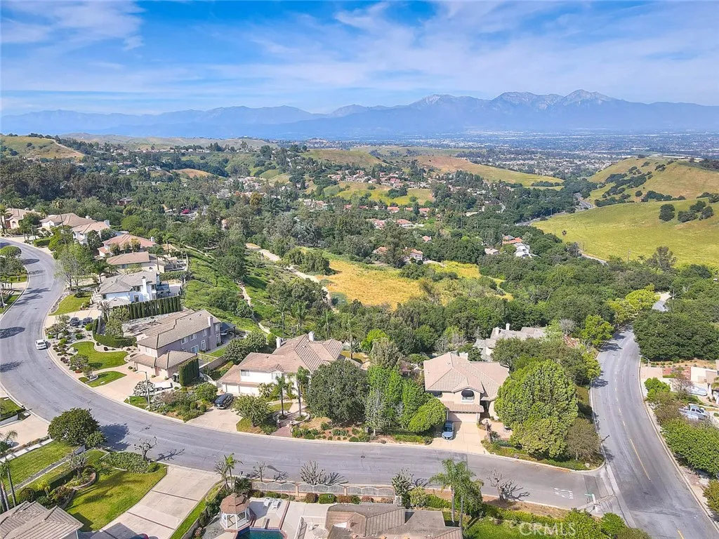 Highly desirable Chino Hills home located in the beautiful Carriage Hills neighborhood with its dramatic rolling foothills & breathtaking views. This wonderful property is situated on a sprawling 21,204 sq ft lot (per tax roll) with majestic mountain & foothill views. A fantastic floorplan features 4 bedrooms plus a bonus room & 2 bathrooms. 3 fireplaces create an inviting setting in multiple locations of the home including the formal living room, family room and primary suite. The primary bedroom is located on the first floor & the 3 guest bedrooms & bonus room are located on the second story of the home. The custom double doors make a dramatic statement as you arrive at the property. Inside boasts upgraded tile flooring that has a contemporary design. Formal living & formal dining room with high ceilings as you enter off the foyer. There is a wonderful granite topped area of cabinets within the formal dining space providing wonderful storage & counter that can be used for decorative purposes or serving needs. Remodeled kitchen is elegant & contemporary in design with sleek cabinetry finish, designer backsplash, upgraded counters, stainless appliances, recessed lighting & sizeable island with bar top dining & custom light fixture overhead as well as in the breakfast nook. The kitchen opens to the family room which features a coffee bar & shelving, high ceilings & views to the backyard. Wonderful first floor primary bedroom enjoys a tranquil setting as you enjoy the fireplace, dual closets & wonderful on-suite bathroom that has been remodeled. Unique dual vanity with new f