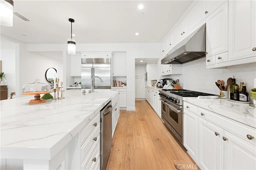 Tucked behind the exclusive gates of The Summit at Turtle Ridge, this end-of-cul-de-sac estate sits on one of the largest lots in the Citrus enclave at over 9,500 sq. ft. Meticulously expanded to 4,073 sq. ft., the home delivers a floor plan that is both grand in scale and genuinely flexible in function. The highlight of recent upgrades is the main-level Wellness Suite permitted as a junior ADU, a sleek, professionally finished gym with a full bathroom and premium finishes that converts effortlessly into a private bedroom or guest suite. Beyond it, the interior flows through a generous formal dining room into a chef's kitchen featuring modern counters and all-new wide-plank wood flooring throughout. Whole-home LED lighting and a thoughtfully reimagined layout make every square foot feel intentional. The primary suite offers a Juliet balcony, dual vanities, a spa-like bath, and a large walk-in wardrobe, plus a private retreat behind dual French doors, ideal as a sitting room or home office. Outside, a private backyard with lush lawn and room for a pool sets the stage for elevated entertaining, complemented by a three-car garage and an oversized driveway that handles any occasion. Located within the award-winning University High School boundaries, residents enjoy resort-style community pools, private hiking trails, and an exclusive clubhouse. 26 View Terrace is a rare combination of scale, privacy, and lifestyle versatility in one of Irvine's most prestigious gated communities.