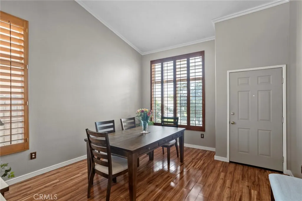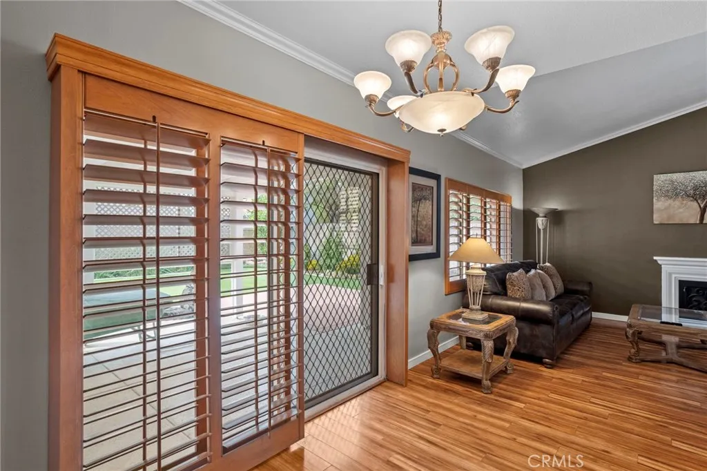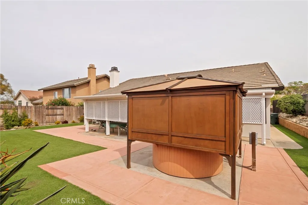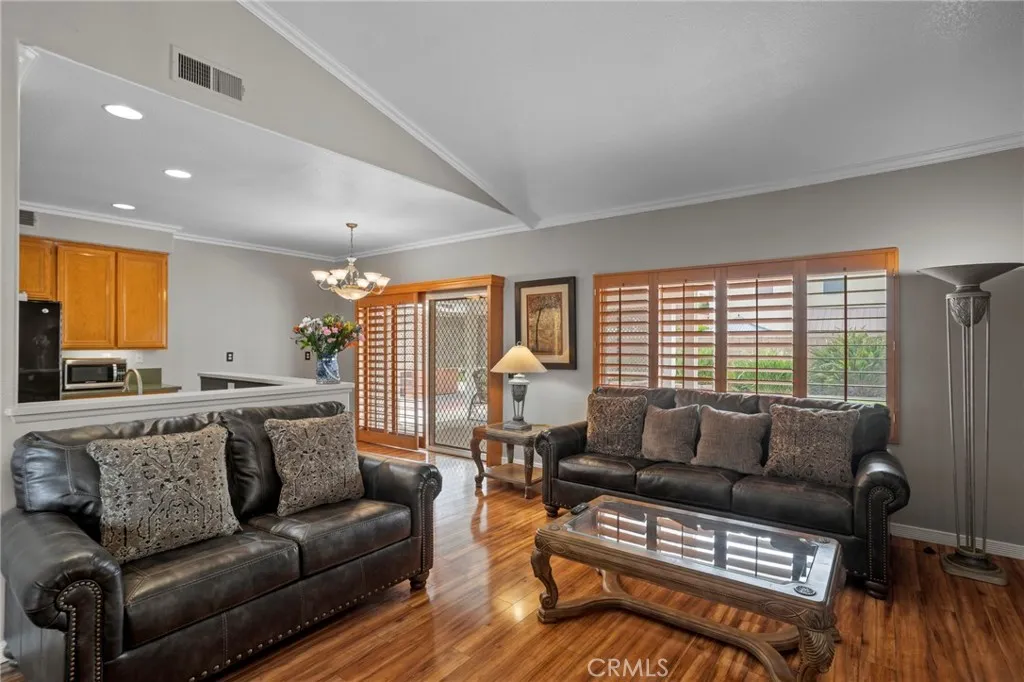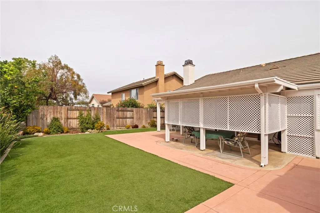Located in South Coronas Chase Ranch, this home offers inviting curb appeal and a well-designed layout that blends functionality with everyday comfort. A formal sitting room or dining area welcomes you in, leading to an open floor plan ideal for both daily living and entertaining. Inside, plantation shutters, crown moulding, and high quality laminate flooring create a cohesive and polished interior. The family room is centered around a fireplace with custom iron doors, adding warmth and character. Natural light fills the space through two sliding glass doors, located in the dining room and a bedroom, providing an easy connection to the outdoors. The kitchen has been thoughtfully updated with a new faucet, garbage disposal, and dishwasher with a 6-year warranty, offering both style and reliability. Updated door hardware throughout and the inclusion of a washer and dryer enhance the homes move-in ready appeal. The primary suite features a walk-in closet and an updated bathroom with a new toilet and shower door. The guest bathroom has also been refreshed with a new toilet, continuing the consistent improvements throughout the home. The backyard is designed for both relaxation and entertaining, featuring high quality artificial turf for low maintenance living, a full-length patio cover for shaded outdoor enjoyment, and a gas BBQ hookup. The spa, gazebo, and shed are all included, offering added versatility. Fencing has been updated on both sides, and in the front yard, the property line extends approximately five feet beyond the retaining wall, providing additional usable drive