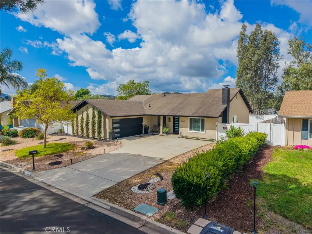 Completely reimagined and move-in ready, this beautifully upgraded, single-story, 4-bedroom, 2-bathroom home in the highly desirable Lake Village Community in Temecula offers the perfect blend of modern design, functionality, and indoor-outdoor living. Situated on a spacious 7,405 sq ft lot and offering 1,645 sq ft of living space, this home stands out from the moment you arrive with its striking curb appeal, highlighted by a sleek, modern garage door, contemporary front entry, and low-maintenance landscaping. Step inside to a bright, open-concept layout featuring luxury plank vinyl flooring throughout, vaulted ceilings, and an abundance of natural light that creates an inviting and airy atmosphere. The living room is both stylish and comfortable, centered around a modern fireplace and seamlessly connected to the dining areaideal for both everyday living and entertaining. The fully remodeled kitchen is a true centerpiece, showcasing crisp white cabinetry, quartz countertops, stainless steel appliances, and a clean, modern backsplash. With ample storage and counter space, its designed to be as functional as it is visually appealing. Both bathrooms have been tastefully upgraded with contemporary finishes, including a spa-inspired walk-in shower, modern vanities, and sleek fixtures that elevate the overall feel of the home. Each of the four bedrooms offers comfortable space and flexibility for families, guests, or a home office setup. Step outside to a private backyard designed for relaxation and enjoyment. The space features a covered patio structure perfect for lounging or e