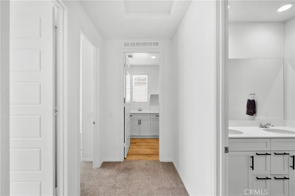 Rare opportunity in the highly sought-after guard-gated community of Terramoroffering exceptional privacy, resort-style amenities, and one of the most desirable lifestyle settings in the area. Tucked away on a quiet cul-de-sac with a private hillside backdrop and no rear neighbors, this upgraded 4-bedroom, 3-bath home offers a rare combination of privacy, space, and everyday functionality that is hard to find in this community. The open-concept layout is filled with natural light and features upgraded flooring throughout the main level. A full bedroom and bathroom downstairs provides flexible living for guests, extended family, or a private home office. At the heart of the home, the chef-inspired kitchen showcases quartz countertops, shaker cabinetry, upgraded appliances, and an extended island designed for gathering, entertaining, and everyday living. The space flows seamlessly into the main living area, creating an effortless indoor-outdoor lifestyle. Step outside to a private backyard retreat where quiet mornings, relaxing evenings, and weekend entertaining feel truly separated from the outside worldan increasingly rare find in Terramor. The front and backyard are tastefully manicured with low-maintenance turf, enhancing curb appeal while providing year-round beauty and ease of maintenance. Upgrades include owned solar panels, EV-ready electrical, and thoughtfully selected improvements that enhance efficiency, comfort, and long-term value. Custom under-stair storage has been thoughtfully designed with built-in cabinetry, maximizing functionality and everyday organization