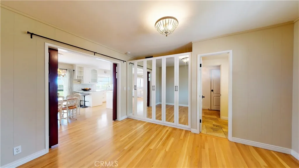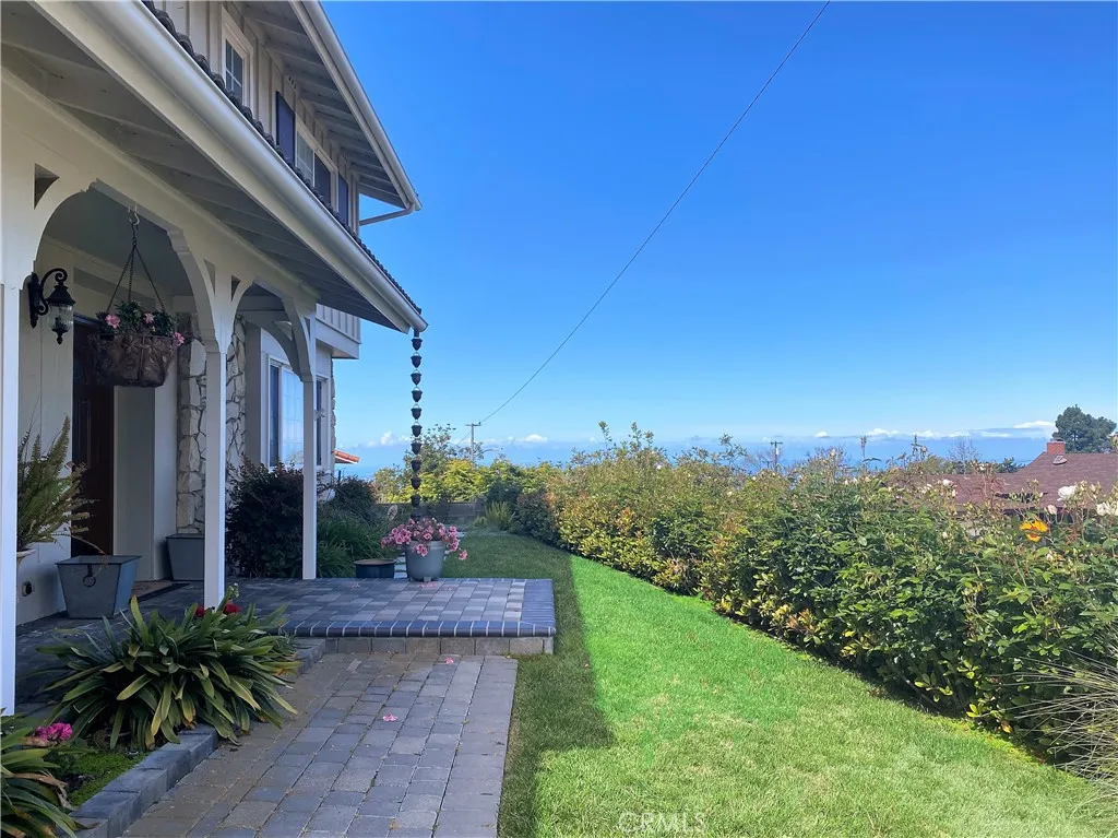 Timeless Los Verdes home with ocean views, classic character, and thoughtful upgrades throughout. Set near the top of the neighborhood on one of the highest plateaus originally selected by noted Beverly Hills developer Barney R. Morris, this cherished two-story traditional residence captures beautiful views of Catalina Island and the Pacific coastline. Proudly offered by only its third owner, this 5-bedroom, 3-bath home blends warmth, function, and an exceptional lifestyle location. A welcoming formal entry opens to a gracious living room with wood floors and an elegant fireplace, while the formal dining room is ideal for hosting family and friends. Large sliding glass doors connect the interior living spaces to the lush backyard, creating effortless indoor-outdoor flow. The spacious kitchen is equipped with quality appliances including a Fisher & Paykel dishwasher, KitchenAid microwave and stovetop, and refrigerator. A main-level bedroom suite with adjoining bath offers flexibility for guests, extended family, or a home office. Upstairs, four additional bedrooms and two remodeled baths enjoy beautiful ocean views. Recent improvements include Pella windows and sliding doors, updated plumbing, tankless water heater, custom closets throughout, newer carpet, and remodeled upstairs and downstairs baths. Designer touches such as Schonbek light fixtures add elegance and sophistication. The private backyard is a true retreat with a flat grassy play area, manicured gardens, covered dining area, fire pit, and a custom playset. Additional features include a concrete tile roof, new ir