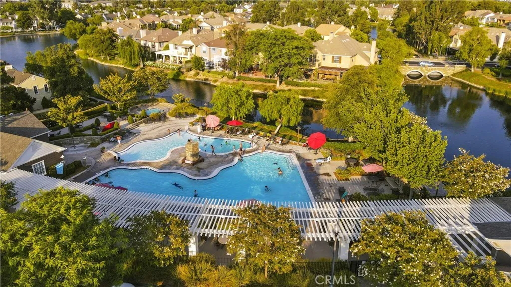 Welcome to luxury living behind the gates of the prestigious Bridgeport Island community! This beautifully situated 4-bedroom, 3 bath home offers a rare opportunity to enjoy serene waterfront surroundings, with a charming stream flowing just behind the propertycreating a peaceful, private backdrop that feels like a daily retreat. This bright and airy home is filled with natural light, enhancing the spacious and functional floor plan designed for both everyday living and entertaining. A highly desirable first-floor room offers the flexibility to be converted into a guest suite, home office, or private retreatperfect for multi-generational living or visiting guests. Upstairs, youll find well-appointed bedrooms providing comfort and privacy for the whole household. The home also features a three-car garage, offering ample space for parking, storage, or even a home gym setup. And it also features a newer 40k paid solar system, saving hundreds a month. Step outside to enjoy the tranquil setting, where the soothing sounds of the stream and nearby walking paths invite you to unwind. Residents of Bridgeport Island enjoy exclusive access to resort-style amenities, including a private lake with scenic pathways, pools, parks, and beautifully maintained grounds that create a true community lifestyle. Whether you're taking an evening stroll around the lake, enjoying peaceful water views, or entertaining in your own backyard, this home offers the perfect blend of elegance, comfort, and location. Dont miss this rare opportunity to live in one of Valencias most sought-after gated communiti