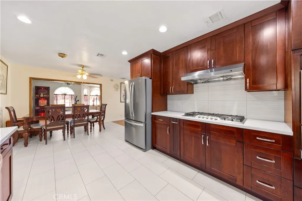 Location is everything. This single-level home is nestled in a tranquil neighborhood in Rowland Heights, just steps from a nearby county park and conveniently situated between local elementary and middle schools. It offers quick access to I-60 and is minutes from shopping centers, grocery stores, and a wide variety of ethnic and international dining optionsdelivering both convenience and privacy. Welcome to a thoughtfully upgraded and well-maintained residence on a 6,426 sq ft lot. This remodeled single-family home features 4 bedrooms, 2.5 bathrooms, and approximately 1,765 sq ft of comfortable living space, complete with a backyard swimming pool. A covered patio provides a private retreat spotted by mature orange, tangerine, and date trees, offering seasonal enjoyment and a relaxing outdoor setting. The home underwent a comprehensive interior renovation in 2019, blending modern finishes with practical design. It features quality laminate flooring in dual living areas and bedrooms, complemented by tiled kitchen and bathrooms. Natural light enhances the open, inviting atmosphere. The spacious kitchen offers well-organized cabinetry and functional layout, with an adjacent dining area for added convenience. Additional features include 2019-new central heating and air conditioning, a tank water heater, a two-car garage, and an extended driveway for ample parking. Recent upgrades include a new composite roof (2024) and refurbished pool wall tiles (2025), adding long-term value and appeal for Southern California outdoor living. This is a rare opportunity to own a turnkey home com