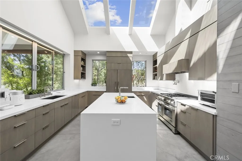 VIEW VIEW VIEW. NEWER HOME BUILT IN 2018 - WINNER OF THE 2019 Design Excellence Award with the AIA SFV -American Institute of Architects. Enjoy sweeping panoramic views from the primary suite, living room, and kitchen, with scenery extending from the surrounding mountains to the San Fernando Valley. Thoughtfully planned out layout and unique features are breathtaking and one of a kind. This architecturally distinctive home showcases and refines modern design with soaring ceilings, expansive windows that fill the home with natural light and numerous skylights. The open concept floor plan is designed for both everyday living and entertaining, highlighted by an oversized living and dining area with a dramatic dual fireplace. The kitchen features high end appliances, sleek cabinetry, and generous workspace, seamlessly connecting to multiple covered patios and balconies that create an indoor outdoor living experience. YOU'LL FEEL LIKE YOU'RE ON VACATION WITH ALL THE DIFFERENT UNIQUE OUTDOOR SPACES. Primary suite offers a walk in closet and a spa style bathroom, while all additional bedrooms include its own private bathroom, providing comfort and privacy. One bedroom has a bonus LOFT to enjoy as extra living space, office, play area- the possibilities are endless. Custom modern estate located within a quiet gated enclave offering privacy, panoramic views, and nearby equestrian trails. Additional highlights include vaulted ceilings, ample size windows, and a large oversized backyard with plenty of potential. MAKE IT YOUR OWN. BRING YOUR IMAGINATION TO LIFE! Conveniently located ne