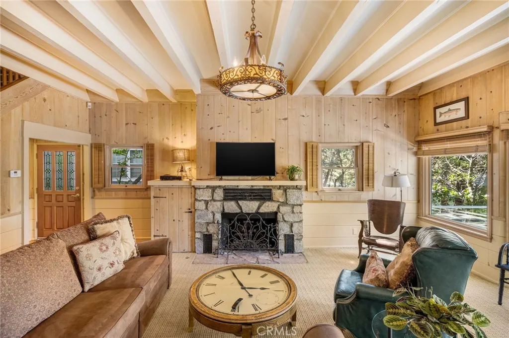 Discover your rare lakefront opportunity on the highly desirable John Muir Road in Lake Arrowhead. This beautifully maintained home offers cozy vintage charm blended with practical modern comfortsperfect for families seeking privacy, convenience, and all-season mountain enjoyment. The property provides abundant parking and a spacious, well-designed garage with extensive storage for snow gear, summer toys, and more, plus dedicated storage rooms below ideal for water sport equipment or as a flexible game room. Easy access to Snow Valley Ski Resort adds to the four-season appeal. Inside, warm wood walls and a gas-log fireplace create an inviting feel. The functional kitchen offers plenty of counter space, while open living and dining areas flow effortlessly to a large deck and multi-level hardscape patiosideal for morning coffee or evening gatherings , all with stunning lake views. The expansive deck overlooks the water toward Lake Arrowhead Village. There are five bedrooms in total, offering excellent flexibility for family and guests. Upstairs, the primary suite provides a peaceful retreat with lake views and its own privacy, complemented by two additional spacious bedrooms on the same floor that work beautifully for family or guests. On the main floor, a well-placed guest bedroom provides easy access, while the bedroom on the bottom level functions as a comfortable guest room and can also serve as a quiet office. Lakefront living reaches its peak here with your single-slip dock in deep, calm waters, situated in Orchard Bayperfect for boating, kayaking, or relaxing dockside.