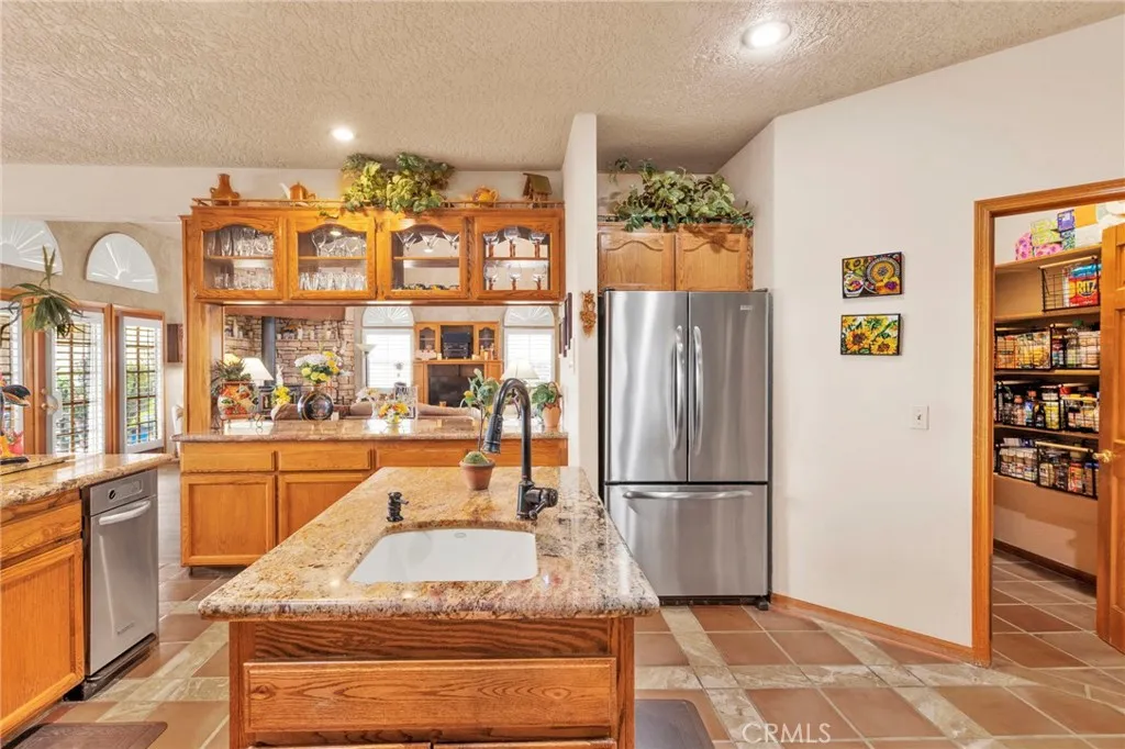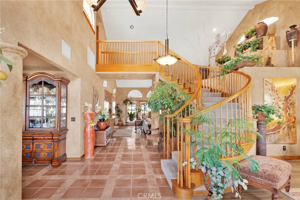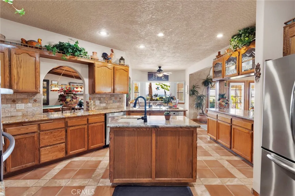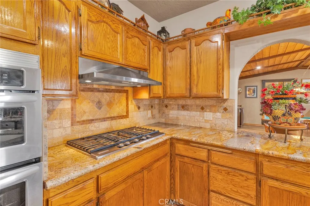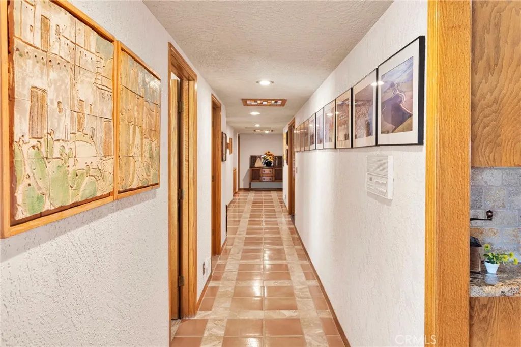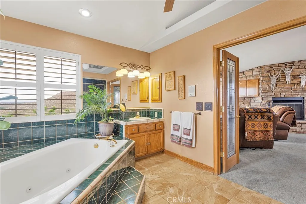 New on the Market in the Exclusive Gated Community of Ridge Estates in Apple Valley! This stunning home offers breathtaking city lights and mountain views and is ideally situated at the end of a quiet cul-de-sac on an oversized -acre lot. Featuring 4 bedrooms, 3.5 bathrooms, this home showcases a unique Southwest-inspired interior with textured painted walls and warm, inviting design elements throughout. The spacious game room with a wet bar is perfect for entertaining, while the open-concept layout seamlessly connects the living spaces. The modern kitchen is truly the heart of the home, complete with oak cabinetry, granite countertops, newer stainless steel appliances, and a breakfast nook perfectly positioned to take in those incredible views. The family room features a raised brick hearth with a cozy wood-burning stove, creating the perfect space for gathering. The primary suite is located upstairs, offering a private retreat with its own balcony to enjoy sunrise coffee or evening cocktails with a view. Youll also love the fireplace, cedar-lined walk-in closet, and well-appointed en-suite bathroom with a soaking tub, separate walk-in shower, and dual-sink vanities. Downstairs, youll find three additional spacious bedrooms, including two with a pass-through bathroom layout, along with a hallway bathroom that offers direct outdoor accessideal for poolside convenience. Step outside to your own private oasis! The recently updated pool and spa have been beautifully refreshed and are fully enclosed by white wrought-iron fencing, offering both safety and unobstructed views. Add
