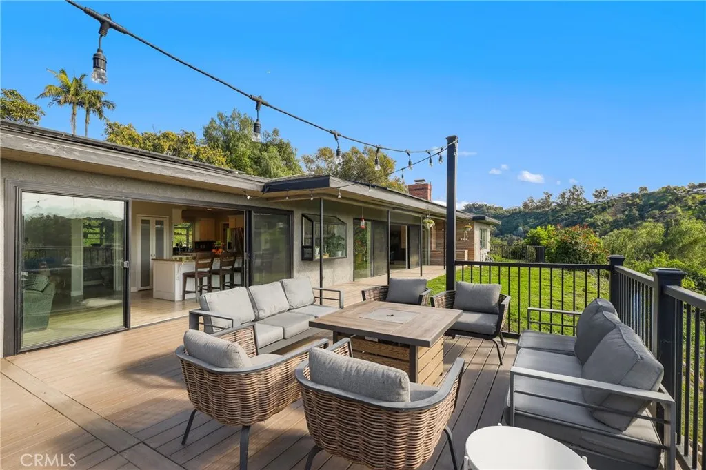 This is your opportunity to tour a hidden gem in La Habra Heights before it is gone! Nestled at the end of a private road, 1918 Chandos Lane offers sweeping Catalina, golf course, and rolling hills views in a peaceful rural setting with convenient access to Los Angeles and Orange County. Designed to maximize natural light and scenery, the home features an open floorplan with spacious rooms and every room oriented to capture the views. The kitchen is the heart of the home with abundant cabinetry, 36 inch wolf range, a large center island, and an open flow into the expansive family room that features custom built-ins. Double sliders extend the living space to over 800 sq ft of Trex decking, perfect for entertaining. A formal dining room connects seamlessly to the formal living room with a classic mid-century fireplace. Upstairs, the approx. 600 sq ft primary suite includes a balcony, gas fireplace, walk-in closet, and ensuite bathroom. The downstairs includes two updated bathrooms, two oversized secondary bedrooms (approx. 12 x 15 each), and a homework desk nook to complete the layout. A flexible bonus room with an outside double door entrance is ideal for a home office, gym, or storage, but is currently used as a game room. Plus, there is a separate laundry room and ample storage throughout the property. Recent upgrades include a new roof with 33 owned solar panels (NEM 2.0), EV charger, new heat pump HVAC, and an upstairs mini-split system. The usable land supports agriculture, horses, chickens, or other pets and livestock, and the terraced garden areas include 5 varieties