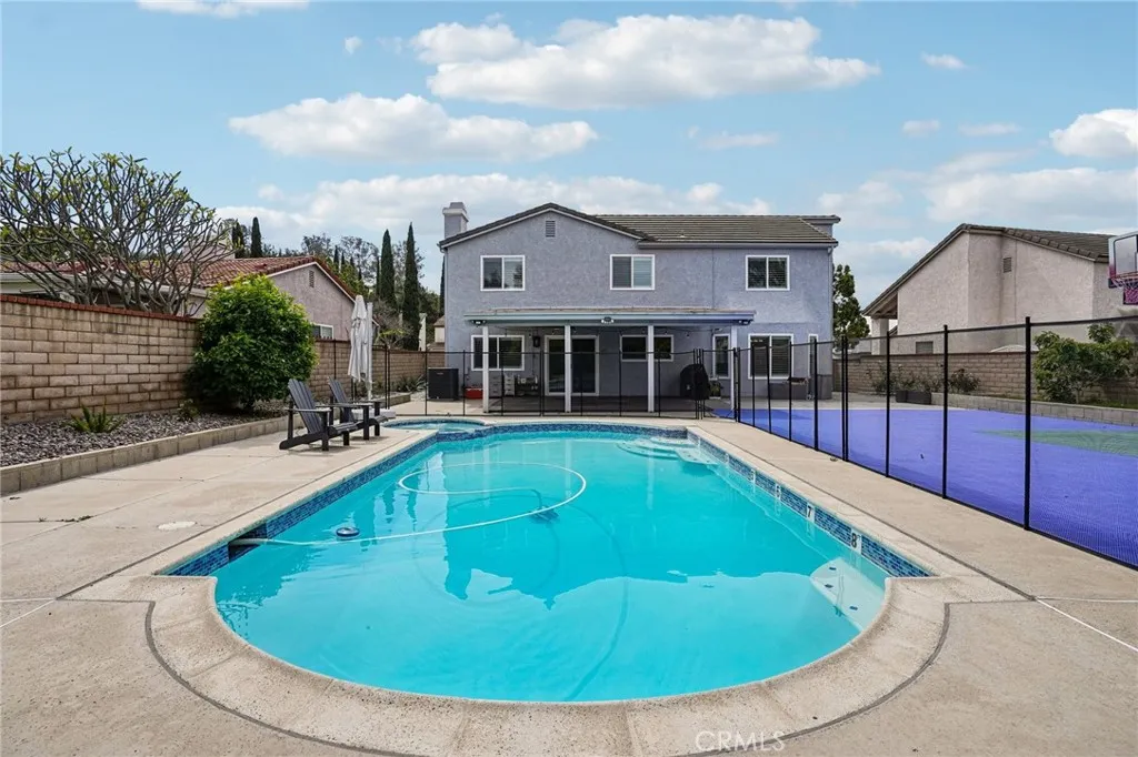 Welcome to this gorgeously fully upgraded move-in ready single-family home, offering 2,453 square feet of living space, 4 spacious bedrooms, and 3 bathrooms and fully paid-off solar panels,. Sitting on an expansive square lot, this home combines comfort, modernity, function, and outdoor entertainment. As you enter, youre greeted by all the following features: a dramatic high-ceiling living room with custom made chandelier, brand new bold-look main door, custom acoustic walls, a formal dining room, matching hallway and dining room ceiling lights, remodeled kitchen with soft-close cabinets, remodeled wet bar with built-in wine rack, living room with electric fireplace, double-door master bedroom with sliding barn door, a true master bedroom walk-in closet and built-in cabinets, fully remodeled master bathroom with all the amenities including a modern toilet, all brand new plantation shutter windows, new A/C condenser unit, new furnace, tankless water heater, integrated water softener, 2-car garage, and garage outlets for EV charging. Step outside into your private backyard oasis with a refinished sparkling pool, child safety fence, new side gate, landscaped front and back yard, dripping system for plants in front yard, a basketball court with ground padding, and a bevy of fruit trees including fig, lemon, loquat, mulberry and blueberry trees. Located just minutes from top-rated schools, popular restaurants, grocery stores, and major freeways, yet tucked away in a quiet and peaceful neighborhood that is not directly facing Pathfinder Road, this is a rare opportunity to own a h