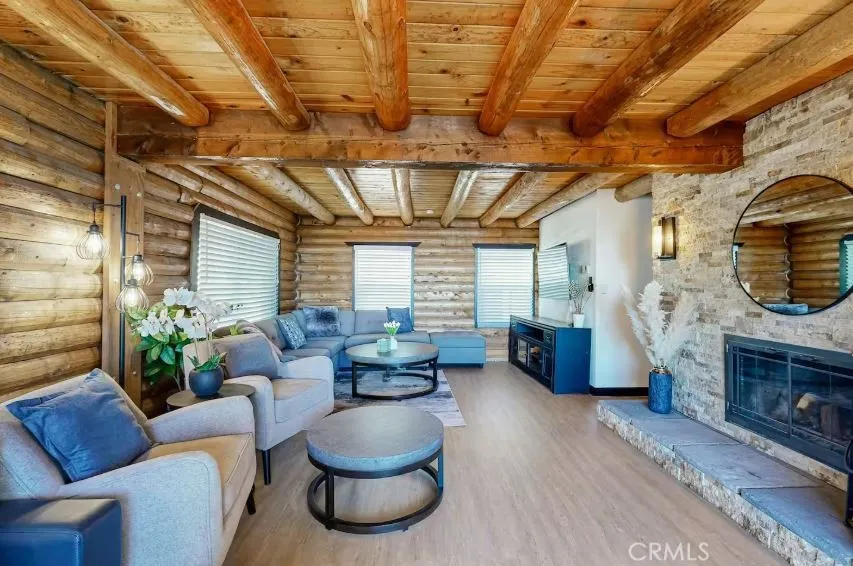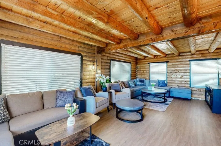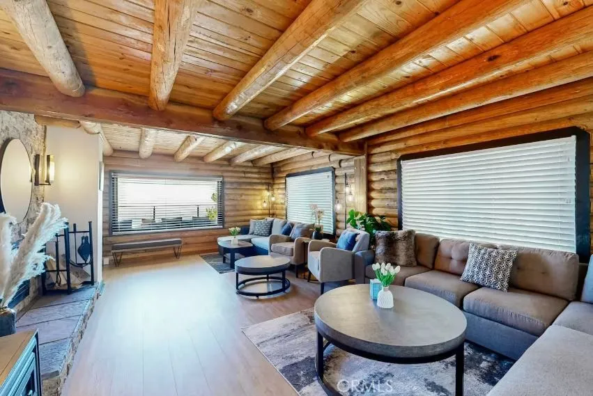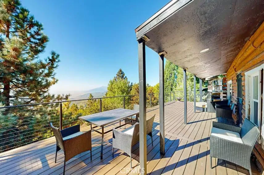 Tucked away in the scenic mountain community of Running Springs, this rare dual-unit log cabin property offers exceptional flexibility, income potential, and breathtaking views. This amazing property is sold with all furniture included. The main residence showcases a beautifully updated 3-bedroom, 2-bathroom log cabin, blending rustic charm with modern finishes from a full remodel completed in 2023. Downstairs, a separate 1-bedroom, 1-bathroom unit features its own private entrance and full kitchenideal for extended family, guests, or rental income. Both units can also be easily combined into one spacious home via an interior staircase, giving you the option to customize the layout to your needs. Adding even more value, the property includes a detached 2-car garage at street level, with an expansive storage area below that offers exciting potential for conversion into a studio or additional rental unit. Currently, the main cabin has been operating as a successful Airbnb and vacation retreat, while the lower unit was previously rented for $1,800/month. With the downstairs unit now vacant, the new owner has a prime opportunity to maximize income or create a multi-generational living setup. One of the standout features is the massive 16'x40' Trex deck overlooking San Bernardino Valley all the way to LA and Orange County. This is one of the most amazing views on the mountain. The deck is a wrap-around deck that goes down both sides of the home to a multi-level entertainment deck attached to the front of the home. Located in a desirable neighborhood just minutes from Santas Vill