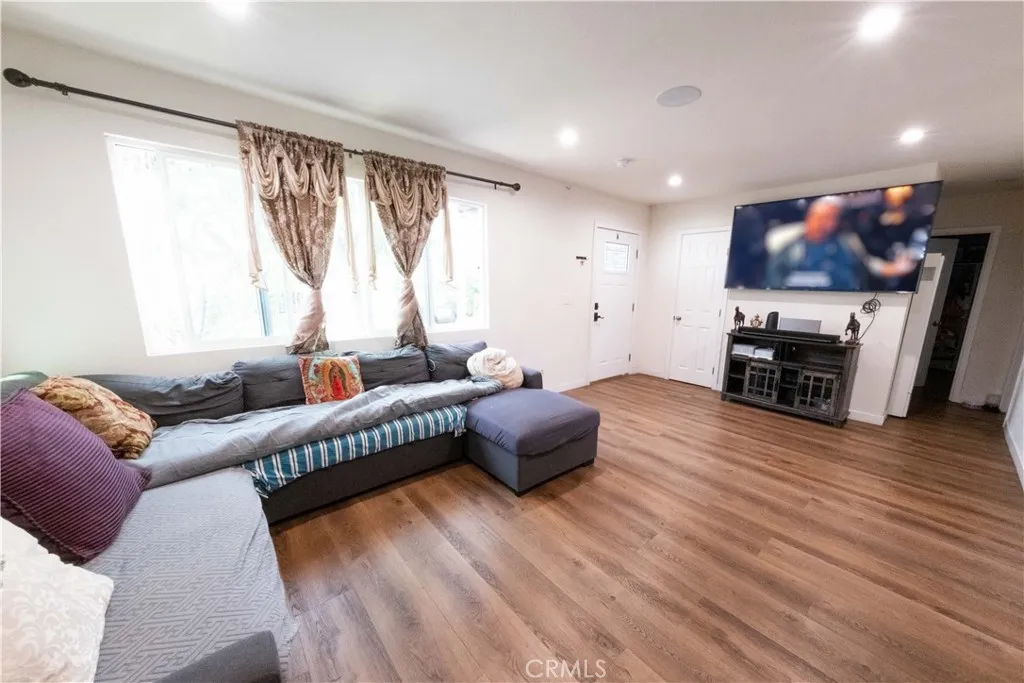 Experience the ultimate in modern flexibility, a stunning residence meticulously rebuilt in 2024. This fabulous home welcomes you with a bright, open-concept floor plan designed for contemporary living, featuring newer stainless steel appliances, premium stone countertops, and a large kitchen island that flows seamlessly into the main living area. The flexible layout offers a total of 3 bedrooms and 2 bathrooms divided into two distinct wings: a comfortable two-bedroom section and a sprawling primary suite featuring an ensuite bath and its own kitchenette. This smart design makes it effortless to enjoy the home as one large family residence or to section it into two private dwellings for multi-generational living or rental potential. Beyond the interior, the property sits on an expansive lot characterized by a lush variety of mature fruit trees and a massive backyard ready for a pool or custom outdoor oasis. Practicality is a standout feature, with a long driveway that easily fits 4 to 5 cars and a garage currently utilized for storage that can be effortlessly converted back to its original use. Ideally located in North Hills, youll enjoy quick access to the 405 and 118 freeways, putting the best of the San Fernando Valleyfrom the Northridge Fashion Center to local parksright at your doorstep. This 2024 rebuild is a rare turnkey opportunity that perfectly balances style, scale, and future-proof utility.