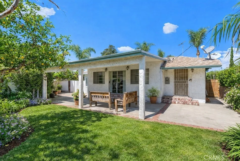 Welcome to 9370 Dorrington Place, a beautifully maintained single-story home tucked away on a quiet, established street in Pacoima. Offering 3 bedrooms, 2 bathrooms, and approximately 1,280 square feet of living space, this home blends comfort, functionality, and timeless appeal. From the moment you arrive, the curb appeal stands out with mature landscaping, manicured lawns, and tall palm trees that frame the property. A welcoming walkway leads to the front entry, setting the tone for the care and pride of ownership found throughout. Inside, the home features a bright and open living and dining area filled with natural light. The layout is both practical and inviting, offering a seamless flow that works well for everyday living or entertaining. Large windows bring in outdoor views, enhancing the overall warmth of the space. The kitchen offers ample cabinetry, generous counter space, and a convenient breakfast bar that opens to the main living area ideal for casual dining or hosting. An adjacent indoor laundry area adds everyday convenience. Both bathrooms have functional layouts with tiled finishes, while the bedrooms are spaciously sized with comfortable layouts and natural light. Step outside to a private backyard featuring a covered patio perfect for outdoor dining, relaxing, or entertaining year round. Completing the property is a detached 2-car garage, offering excellent space for parking, storage, or potential additional uses. The spacious lot provides plenty of room for gardening, play, or future customization to make it your very own ossias.